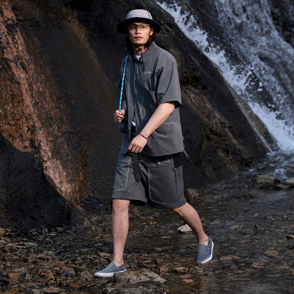 阿迪达斯一脚蹬穿脱男鞋夏季灰色涉水鞋溯溪鞋运动帆布鞋JR1820