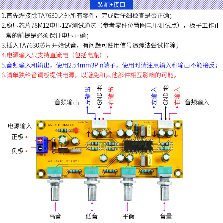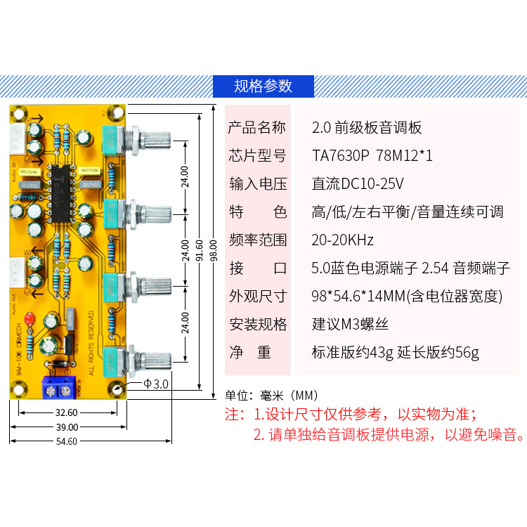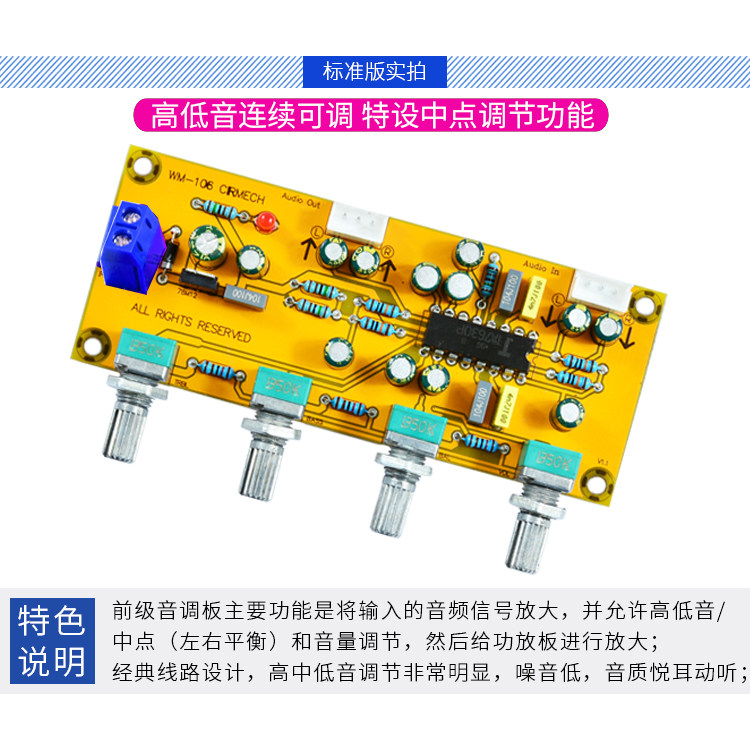 HIFI发烧TA7630P前级高低音中点平衡调节高保真音调前置前级板