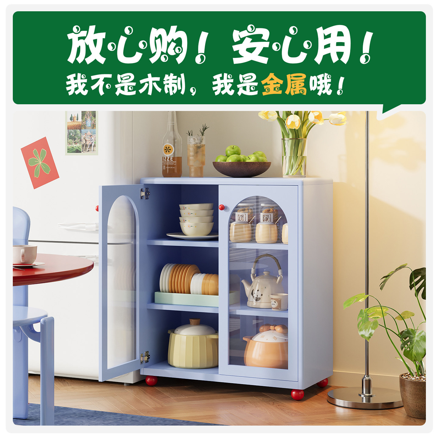 多功能金属餐边柜客厅咖啡柜靠墙一体储物柜小户型家用铁艺置物架