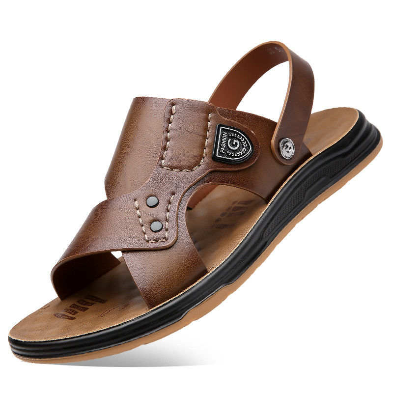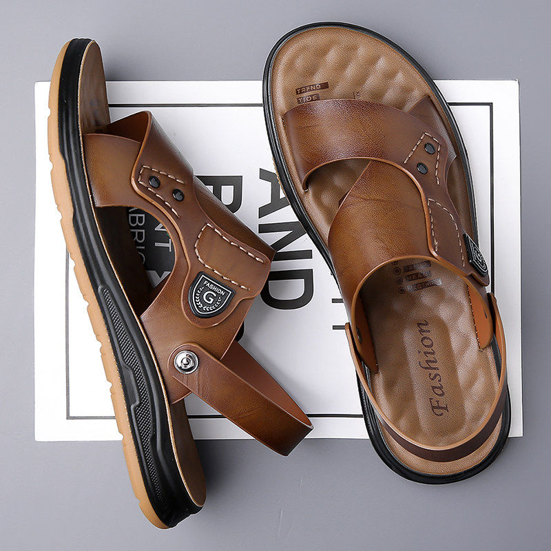啄木鸟沙滩鞋男士头层牛皮牛筋底凉鞋真皮休闲防滑两用爸爸凉拖鞋