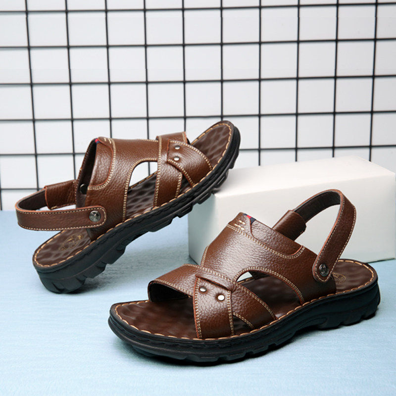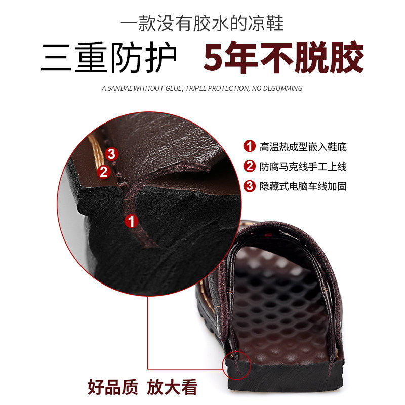 老人头凉鞋男2026夏季牛皮休闲外穿沙滩鞋真皮防滑中老年爸爸拖鞋