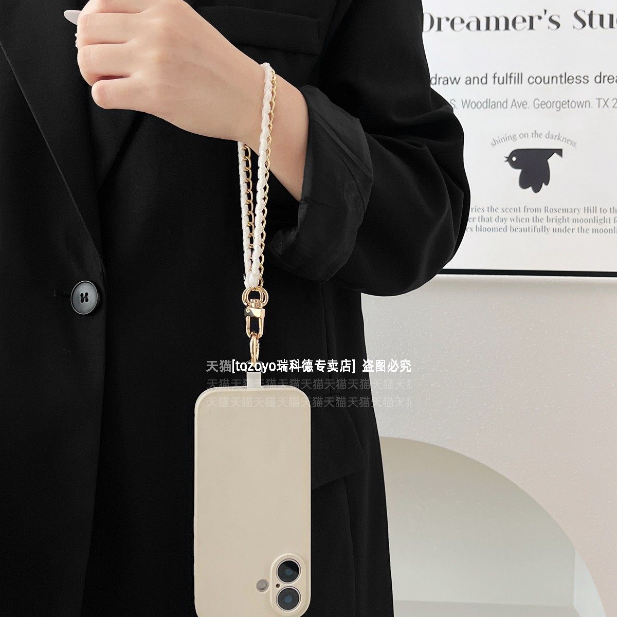 小香风手机链高端丝绒金属挂链防丢手腕挂绳时尚大牌高级感手链结实腕带包包手提链条编织钥匙扣网红女挂件壳