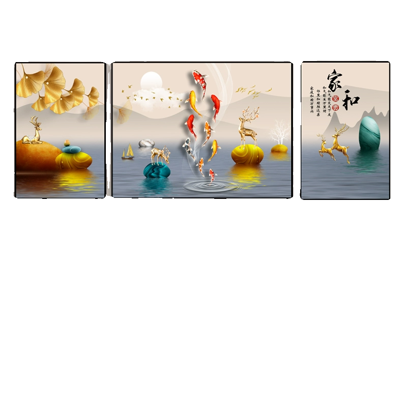 自粘画背景墙带框沙发有福禄新款装饰几何轻奢现代3D高档壁画三联