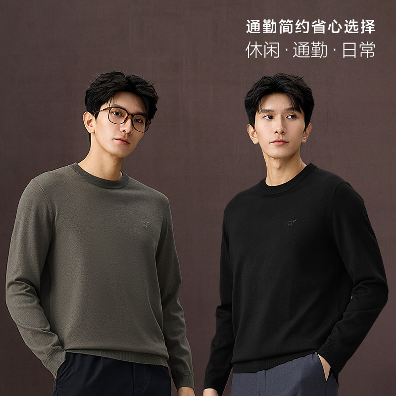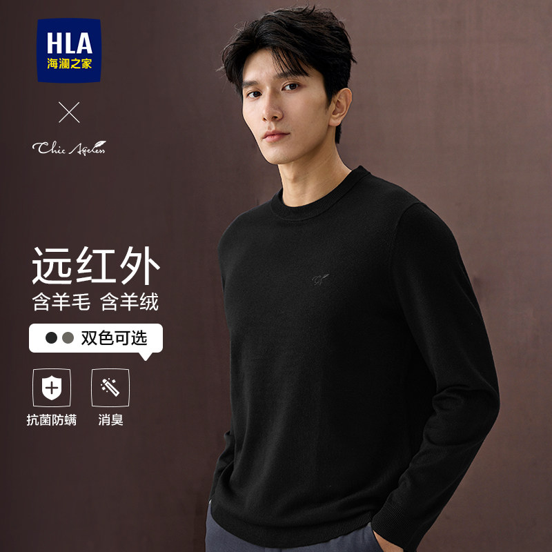 海澜之家轻商务Chic Ageless含羊毛羊绒针织衫25秋冬新黑色毛衣男
