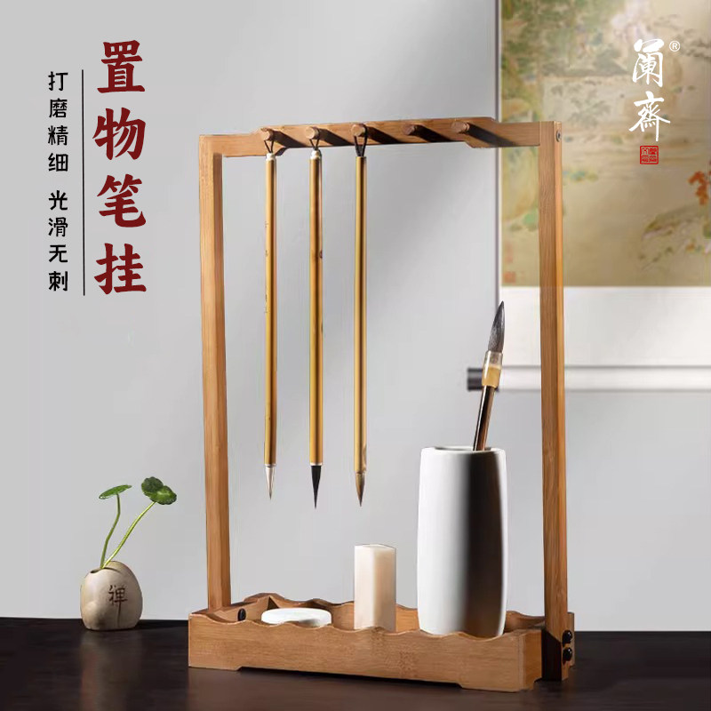 竹楠木鸡翅木兰斋毛笔笔架文房四宝专用毛笔挂收纳盒毛笔架子初学练书法儿童高档摆件入门练字笔墨纸砚小学生