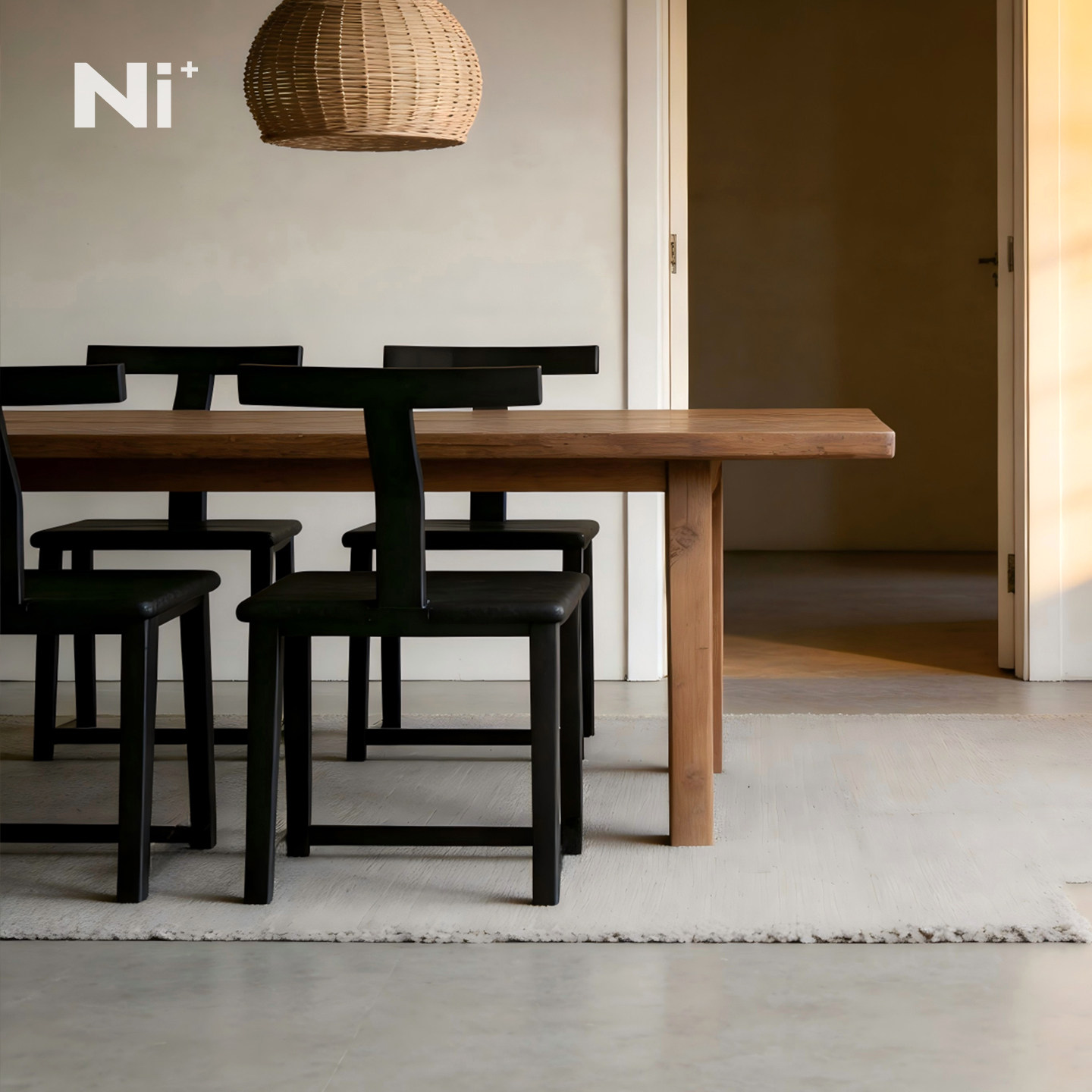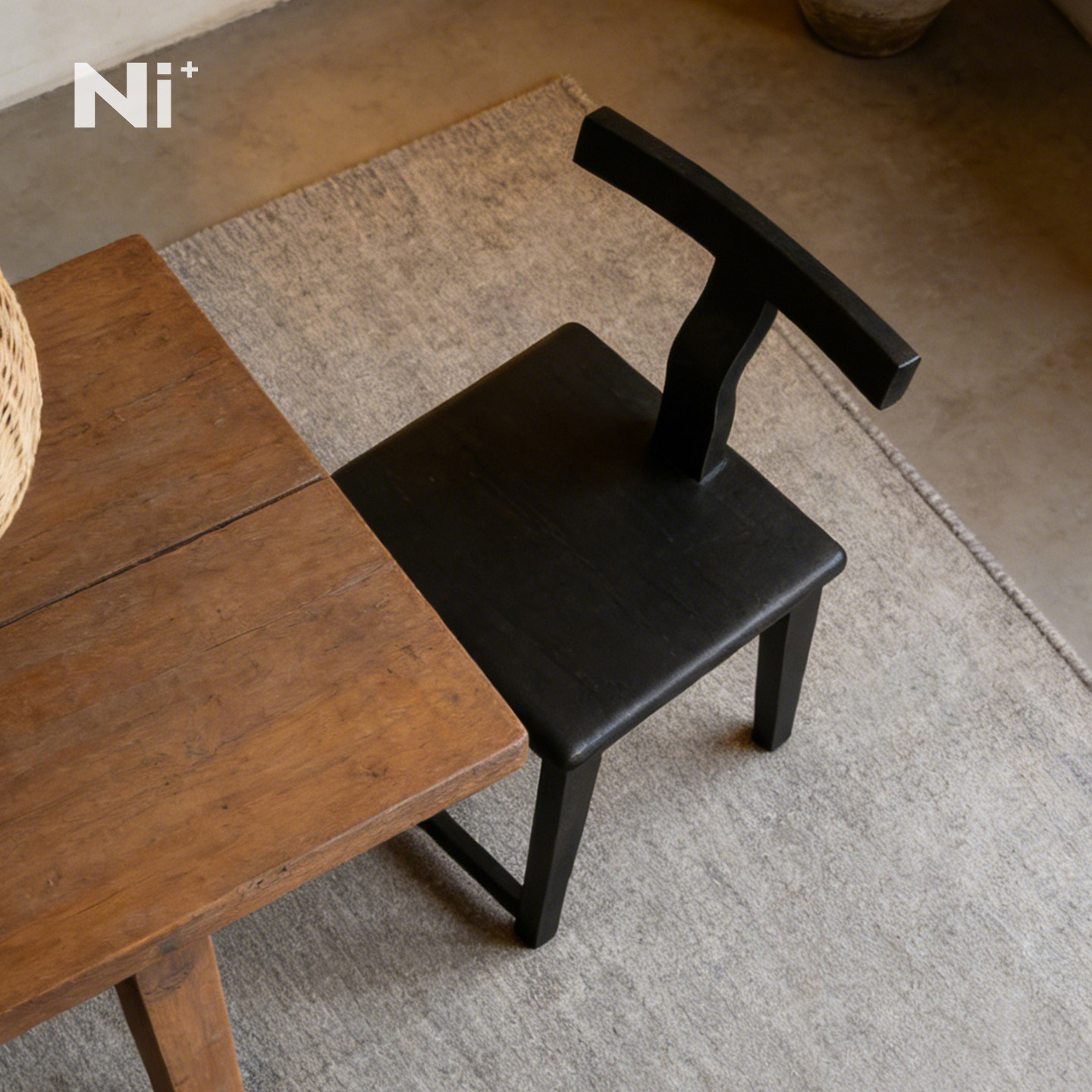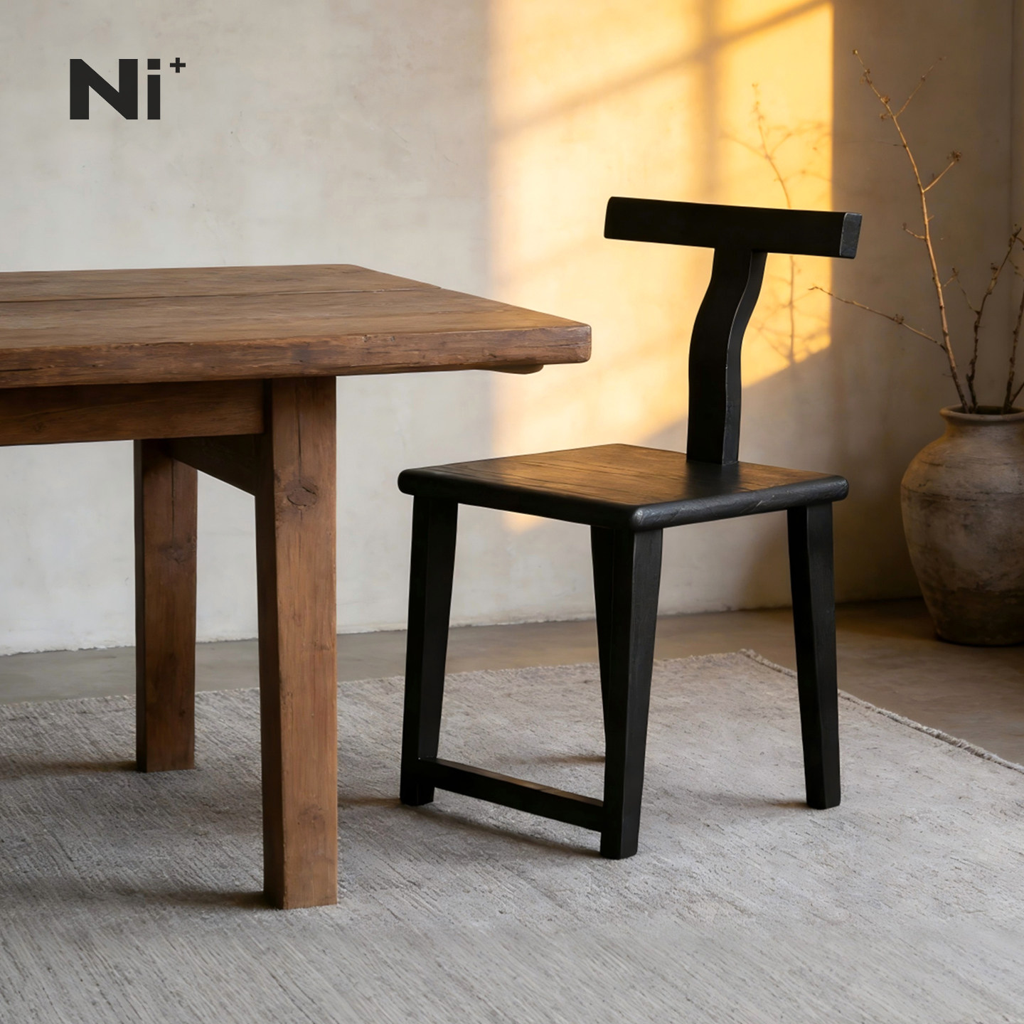 Ni+尼家侘寂风实木餐椅黑色简约家用中古休闲椅民宿酒店餐厅椅子
