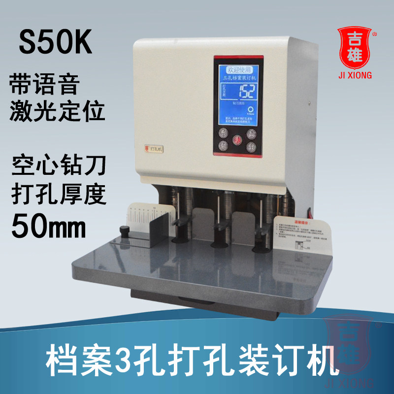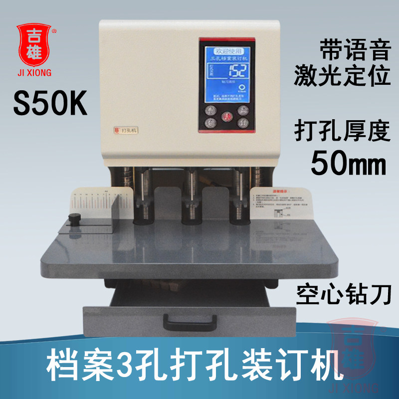 自动电动三孔打孔机S50K激光定位人事档案银行文件凭证装订机带语音空心钻刀宗卷法律文书诺邦NB-350吉雄现代