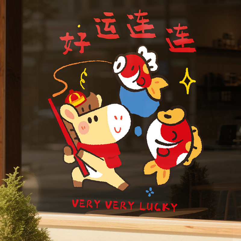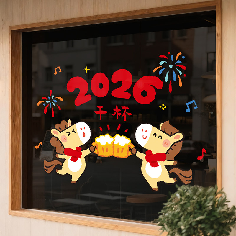 2026窗花店铺布置静电橱窗贴纸新年玻璃装饰马年窗贴过年门贴春节
