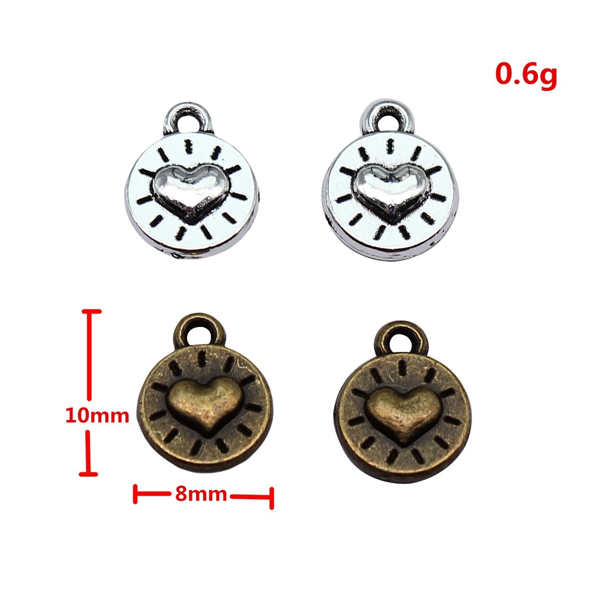 20个/包 10x8mm 多色锌合金材质 DIY饰品配件爱心吊坠 ABD-C11726