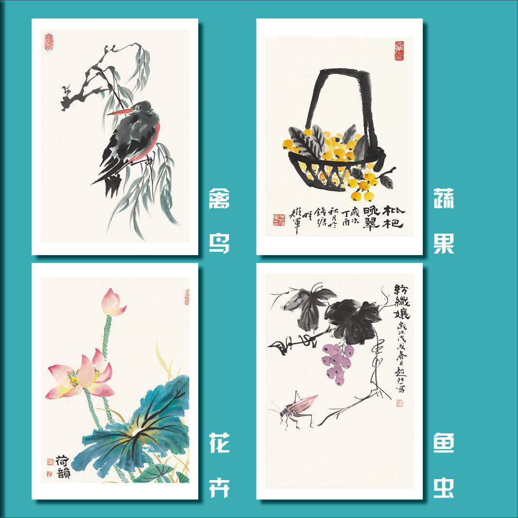 少儿国画美术临摹卡初学儿童水墨画绘画入门艺术培训教学原创40张