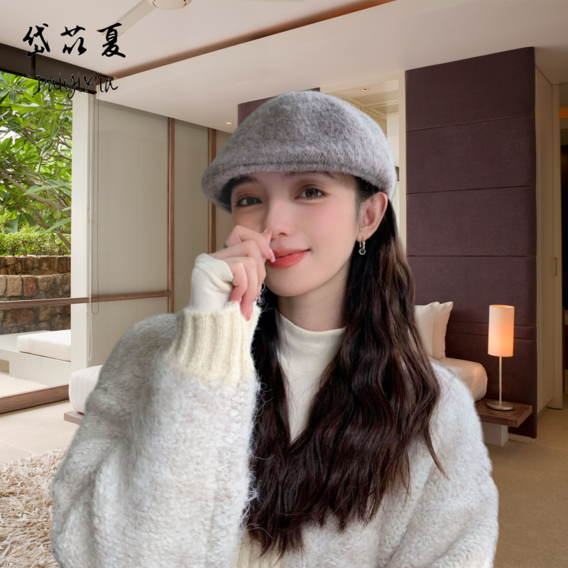 秋冬季铁标复古英伦风前进帽百搭两戴蓓蕾画家帽网红显脸小贝雷帽