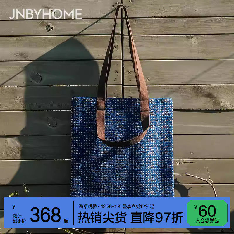 JNBYHOME江南布衣春小众绿色格子腋下手拎随身复古小布包