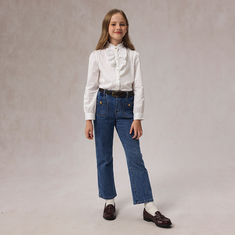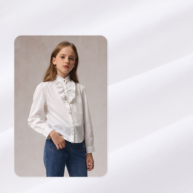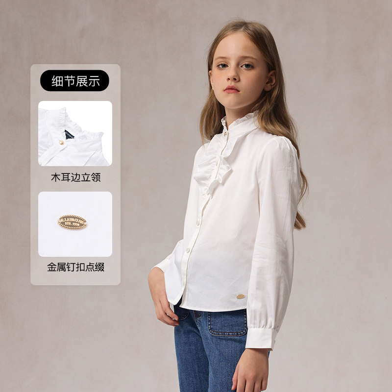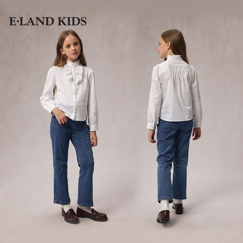 【100%棉】eland kids衣恋童装女童衬衫25年春秋学院风立领长袖