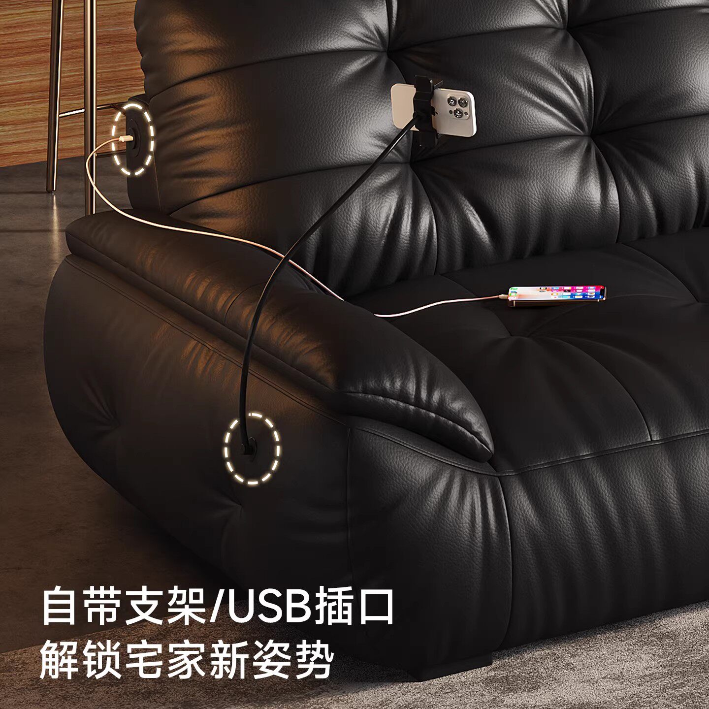 政府补贴DDC意式极简电动功能全真皮熊抱沙发客厅黑色沙发床新款