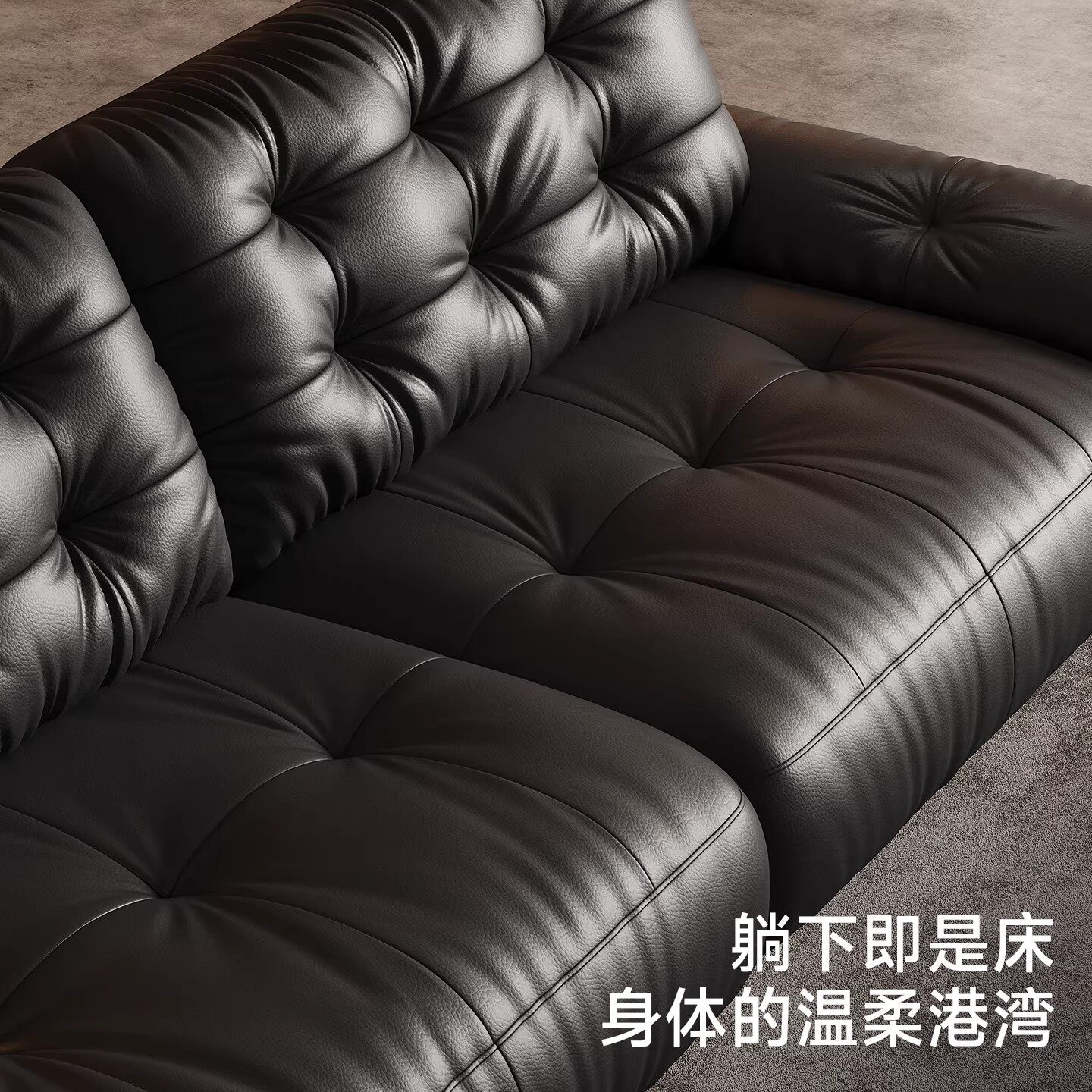 太空云朵沙发意式极简大小户型现代简约头层牛皮直排黑色真皮沙发
