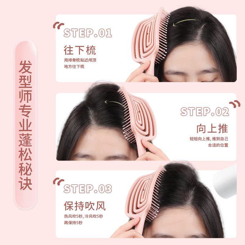 蓬松高颅顶排骨梳女士专用镂空气囊气垫梳按摩干湿两用鱼骨梳子