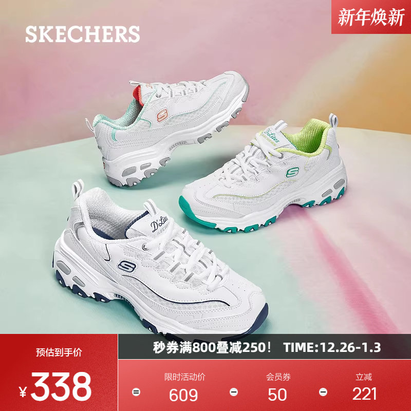 斯凯奇花海熊新款增高老爹鞋官方正品跑步鞋子休闲透气运动鞋女