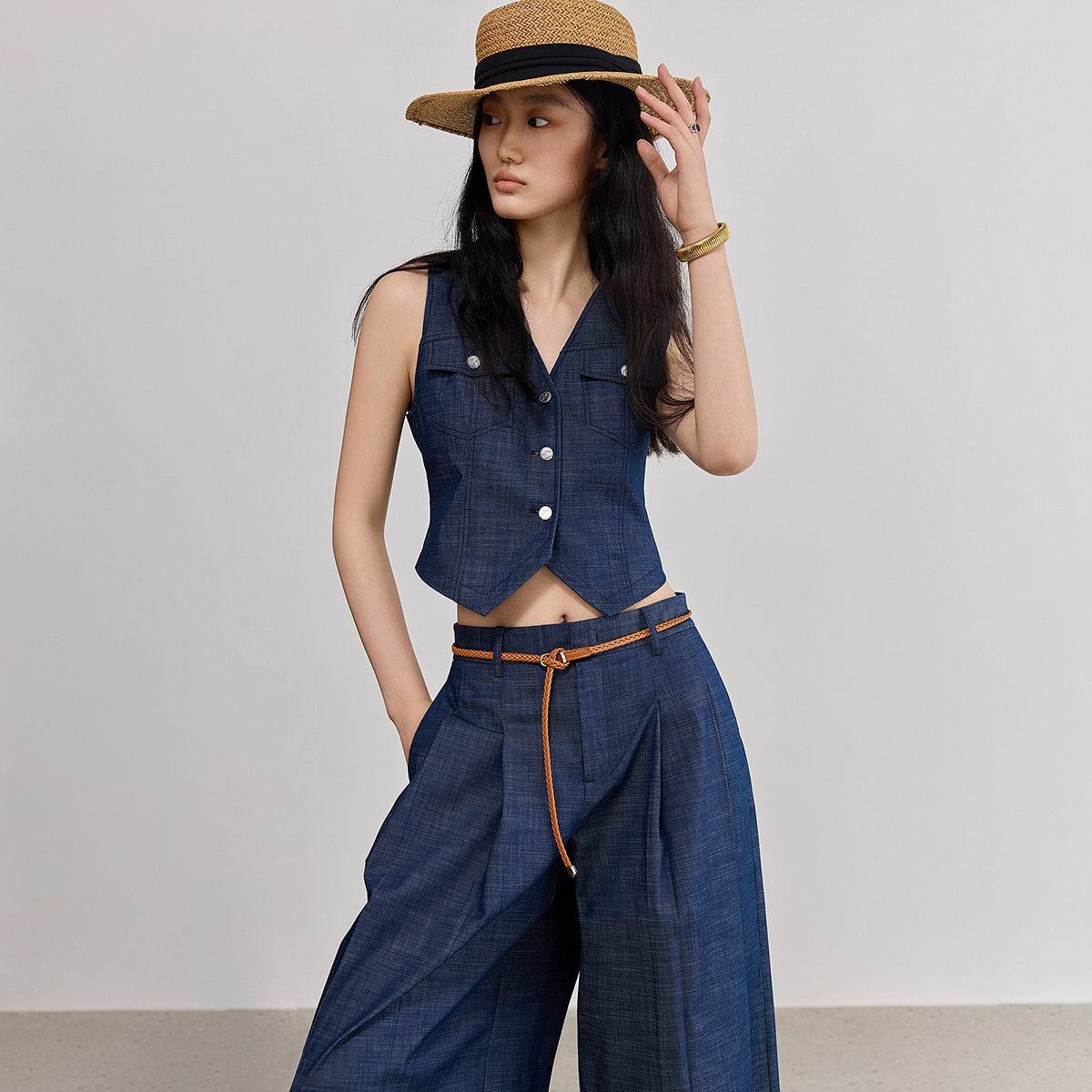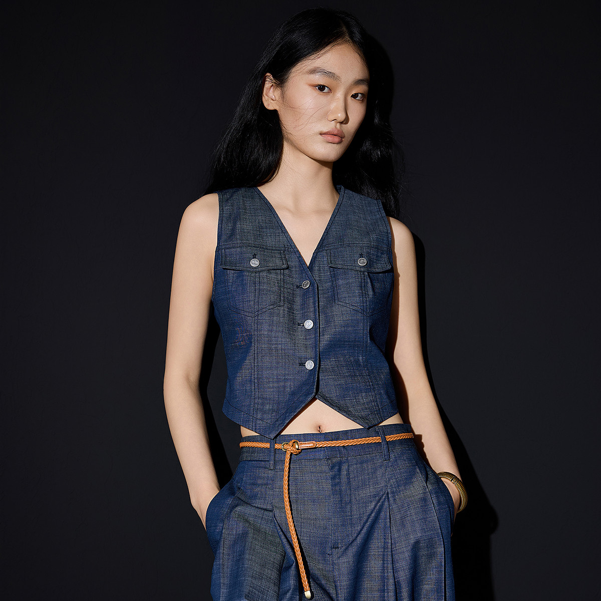 【商场同款】LILY2025新款女装仿牛仔休闲百搭修身V领无袖马甲