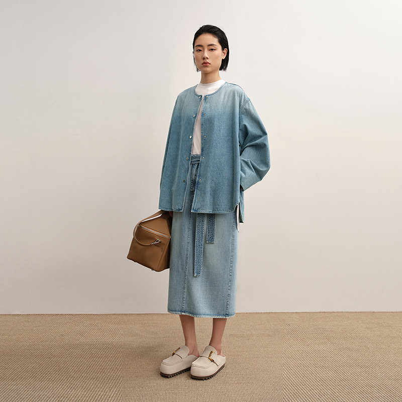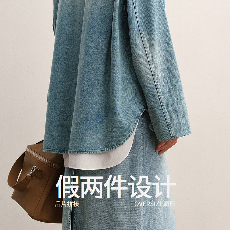 【商场同款】LESS2025年秋新款时尚拼接假两件牛仔夹克2P8616710
