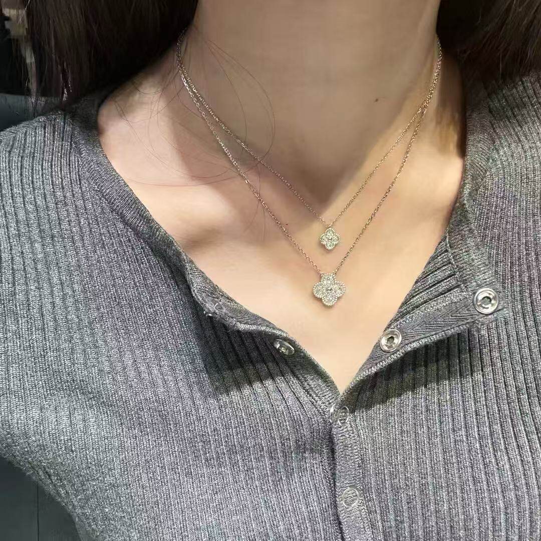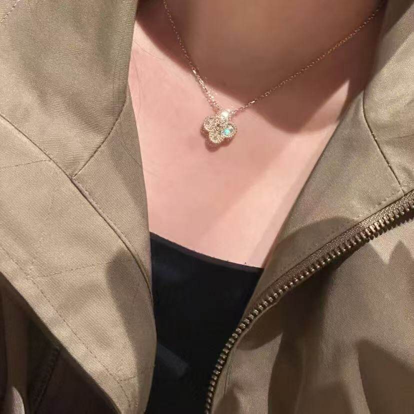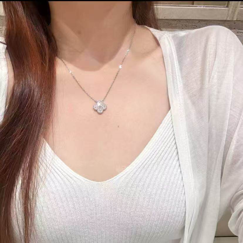 全新高定品质超闪白金满钻幸运草项链锁骨链952银不过敏玫瑰
