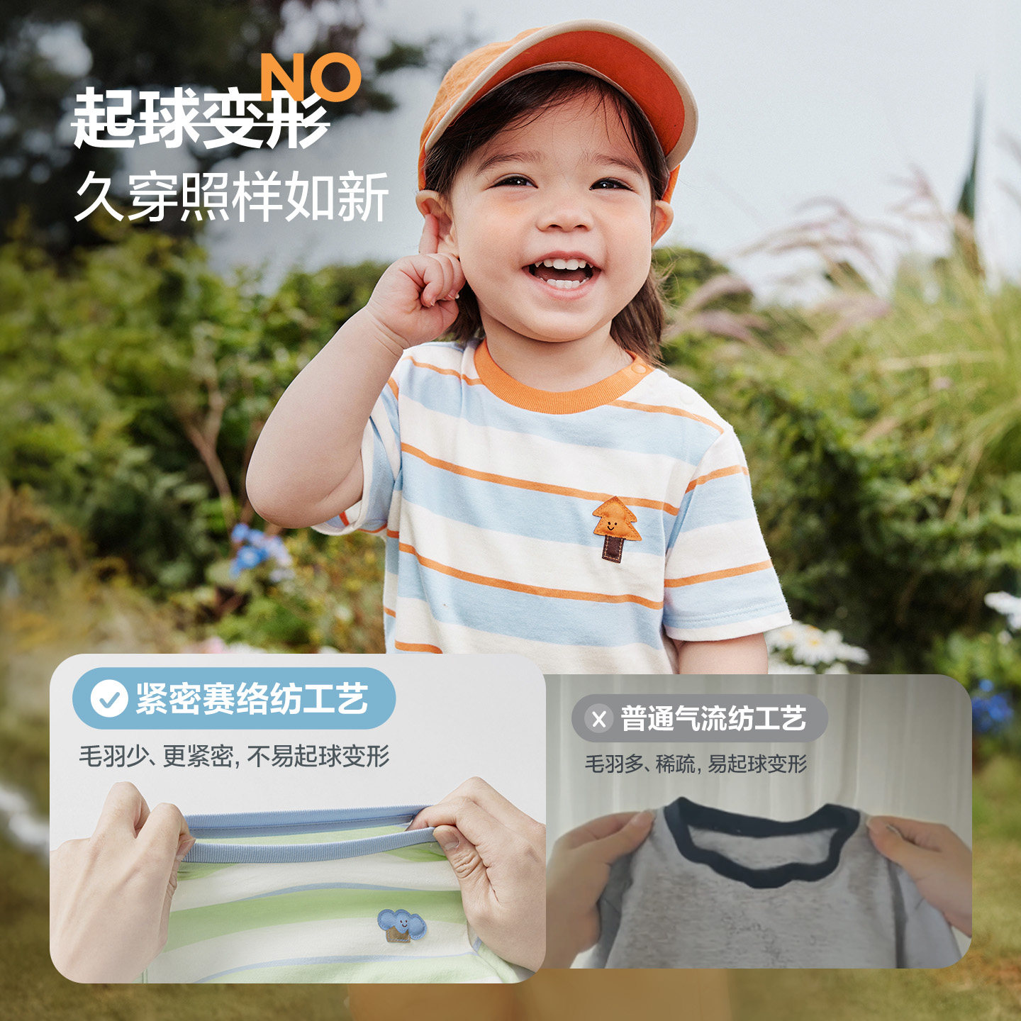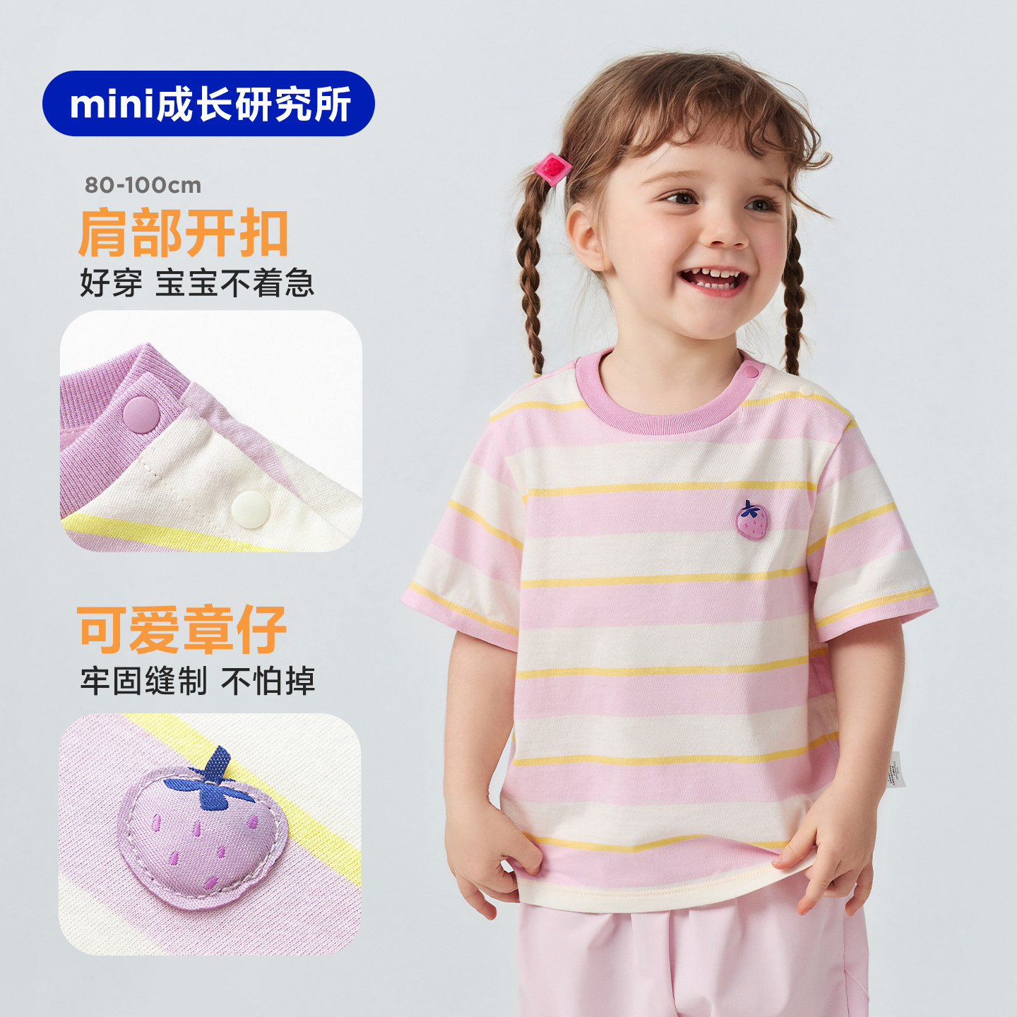 【纯棉条纹T恤】迷你巴拉巴拉男女童短袖T恤宝宝条纹上衣婴儿夏装