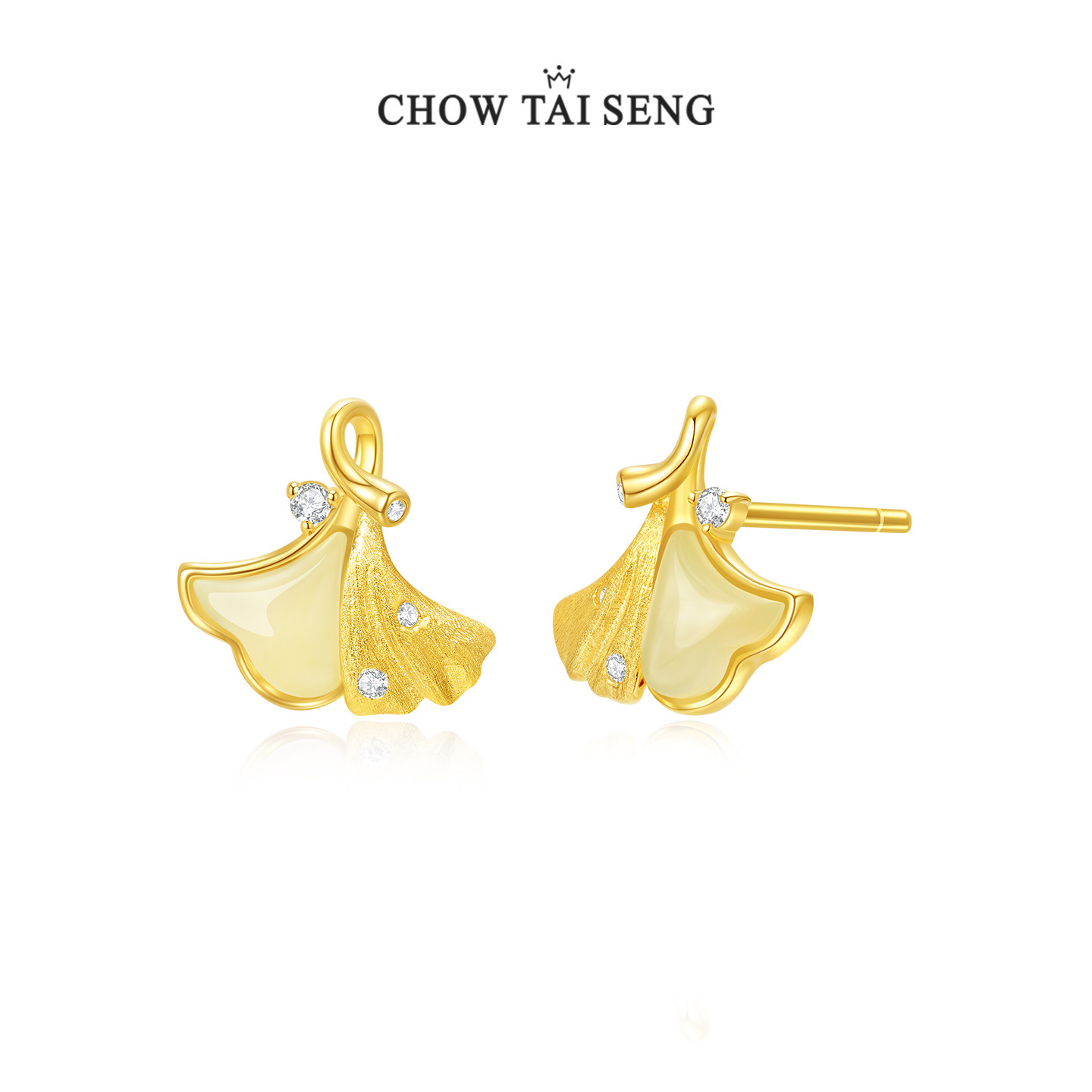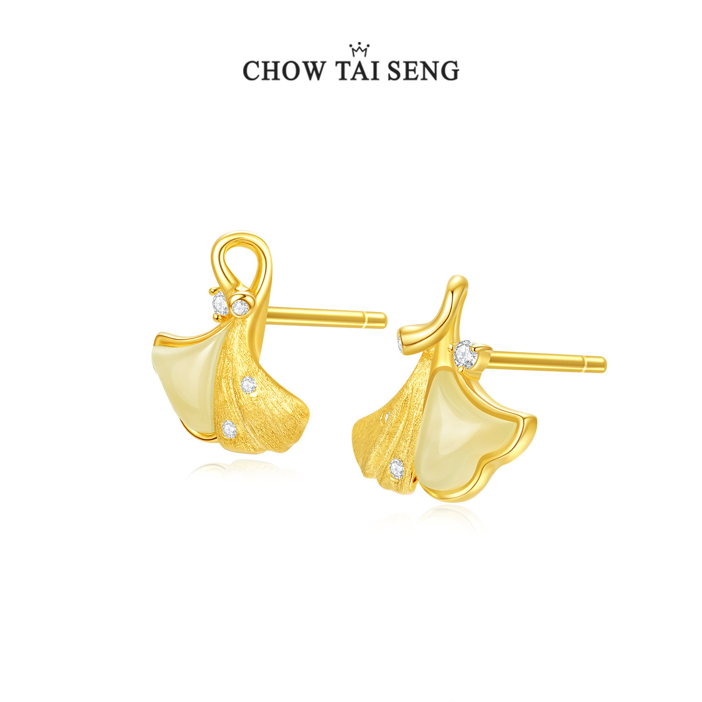 周大生三生有“杏”耳钉女银耳饰和田玉轻奢高级感送女友生日礼物