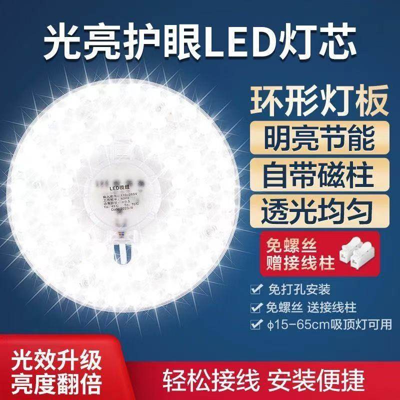 led吸顶灯灯芯替换光源灯盘灯板灯管节能圆形边驱环形灯磁吸三色