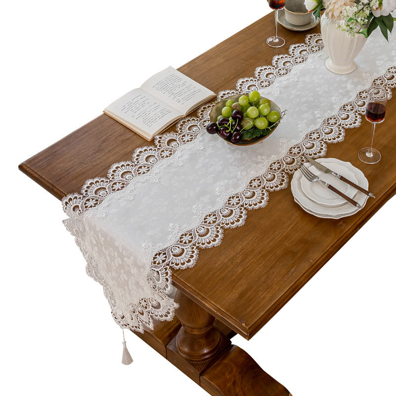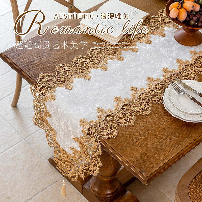 新款刺绣轻奢高级感桌旗仿贡缎镂空蕾丝桌布家用餐桌茶几盖巾批发