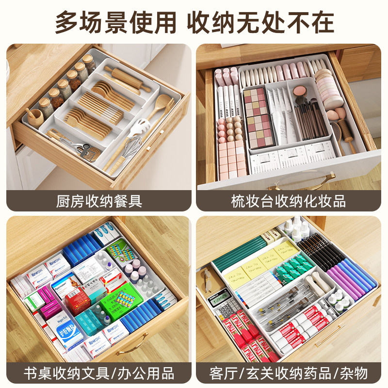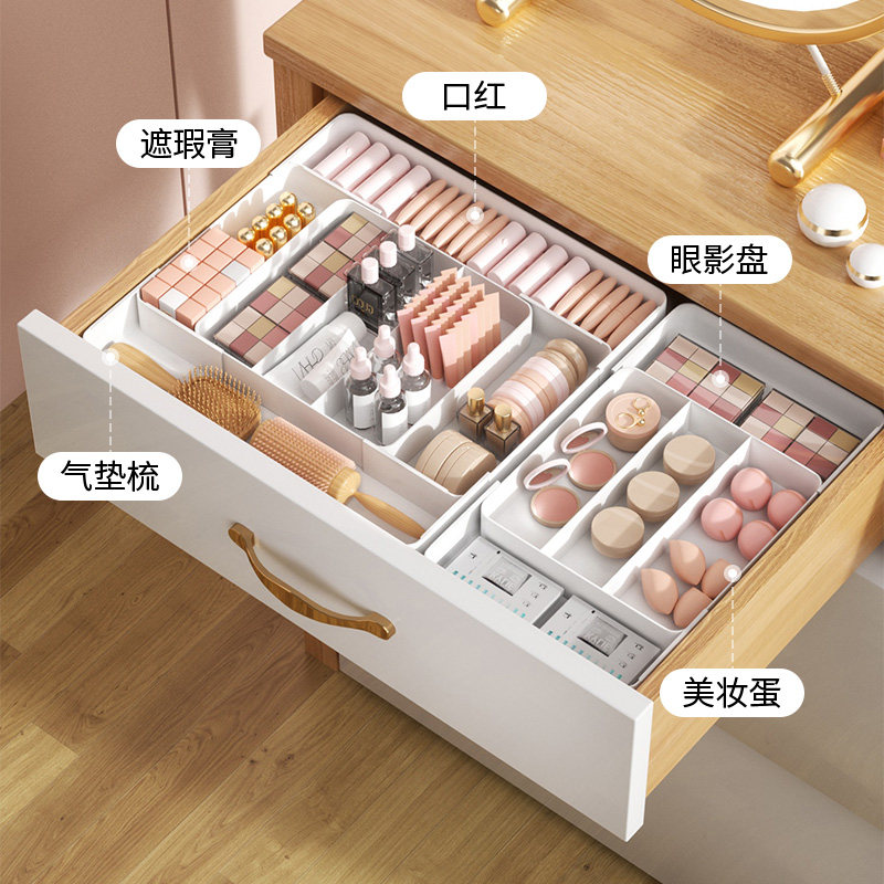 化妆品抽屉收纳盒分隔可伸缩护肤品口红内置格板梳妆台整理盒神器