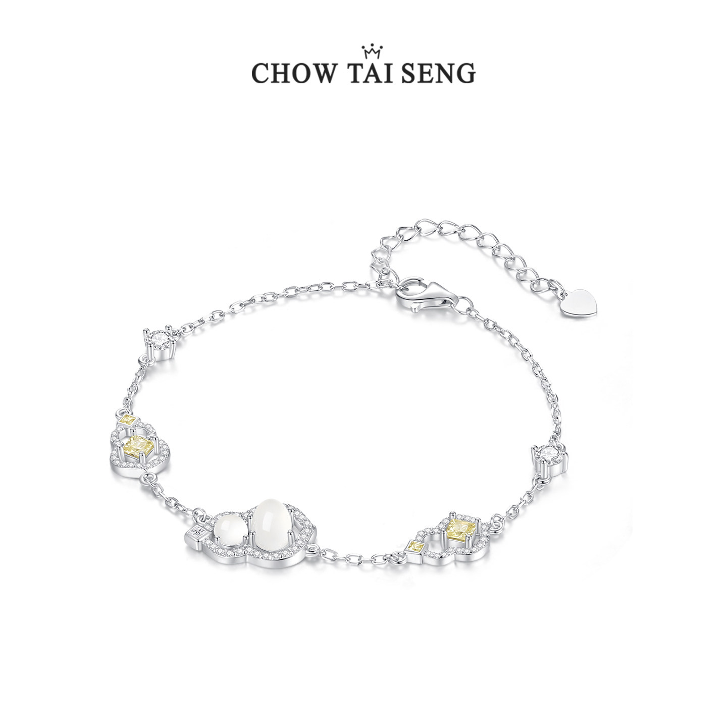 周大生福运莲莲碎银子手链女款纯银和田玉轻奢小众生日礼物送女生