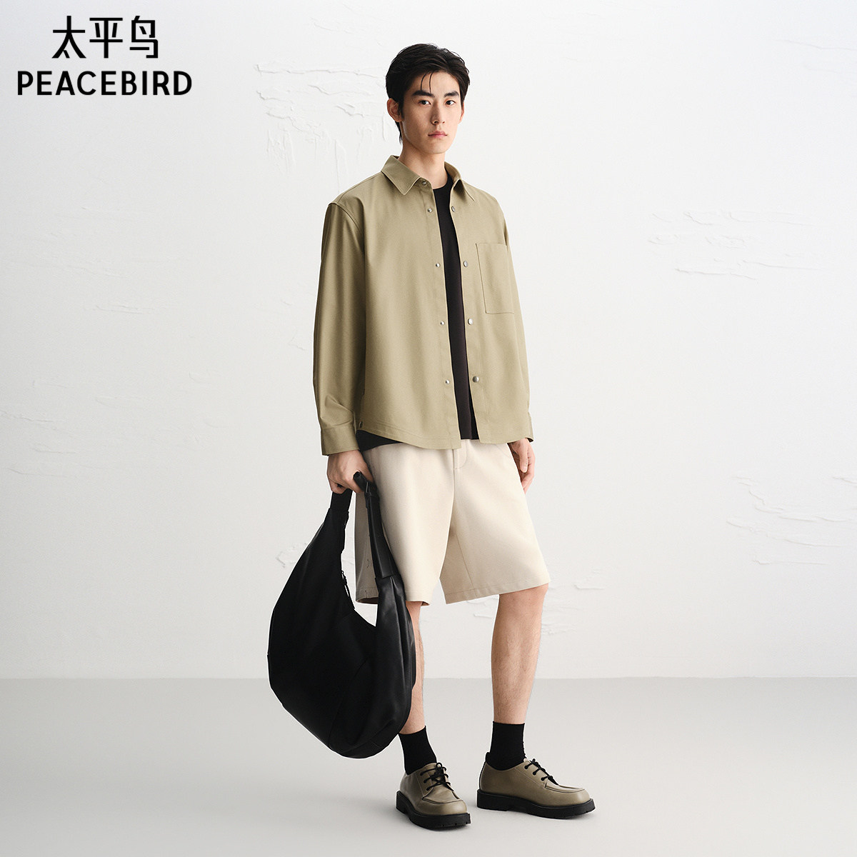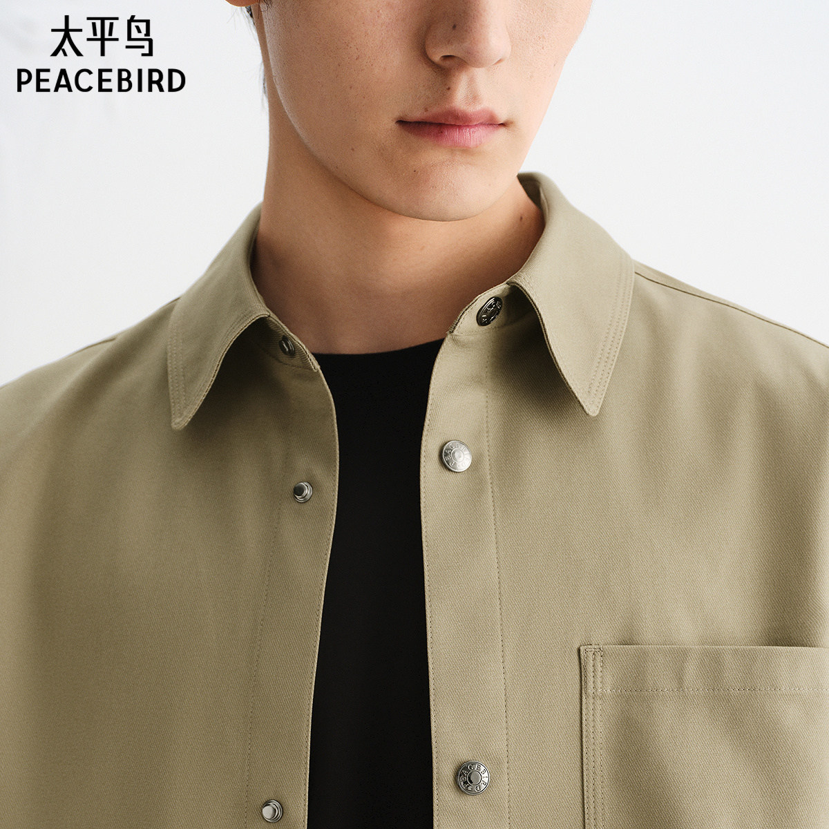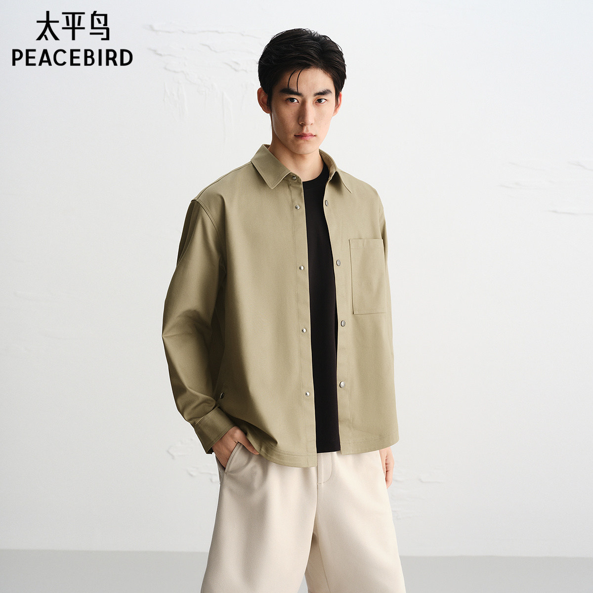 太平鸟男装 外穿式长袖衬衫通勤老钱风时尚阔版翻领衬衣