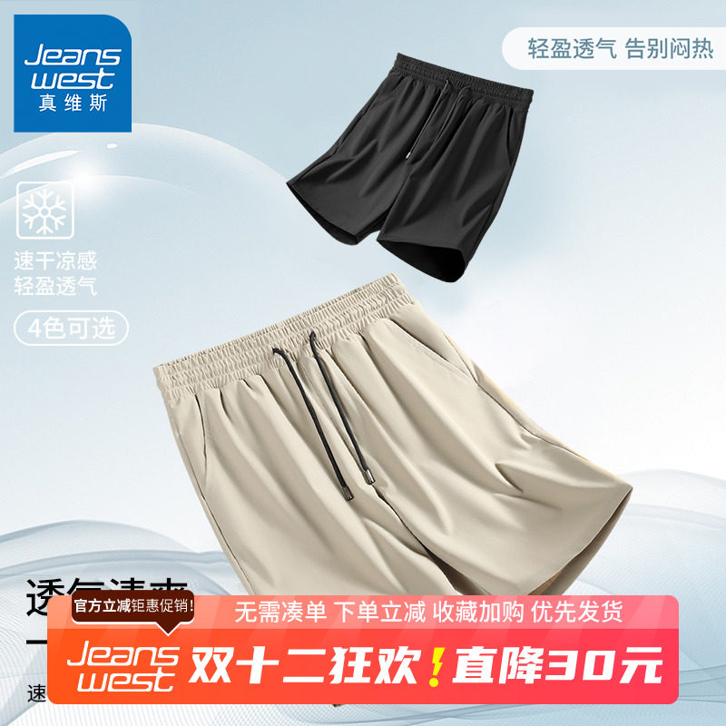 GV真维斯冰丝短裤男夏季跑步速干五分裤宽松休闲大码运动裤子B