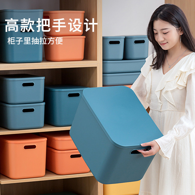 杂物收纳箱玩具零食储物筐家用衣柜放衣服带盖整理盒塑料置物箱子