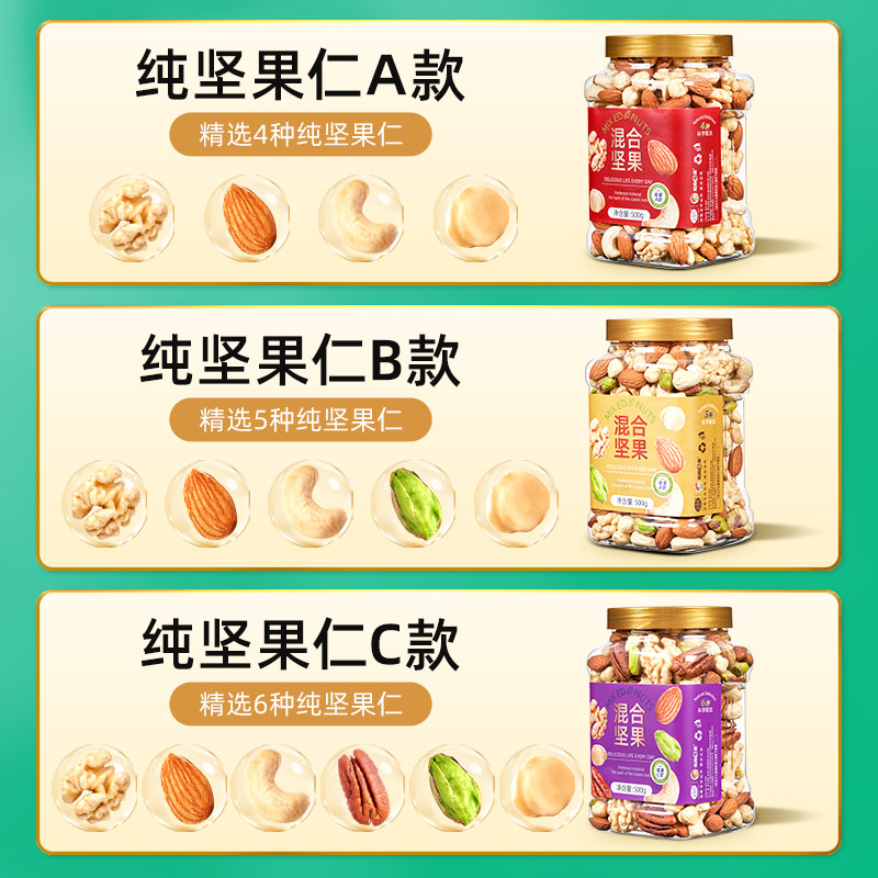 每日坚果混合纯坚果仁500g罐装原味孕妇儿童专用零食大全干果批发