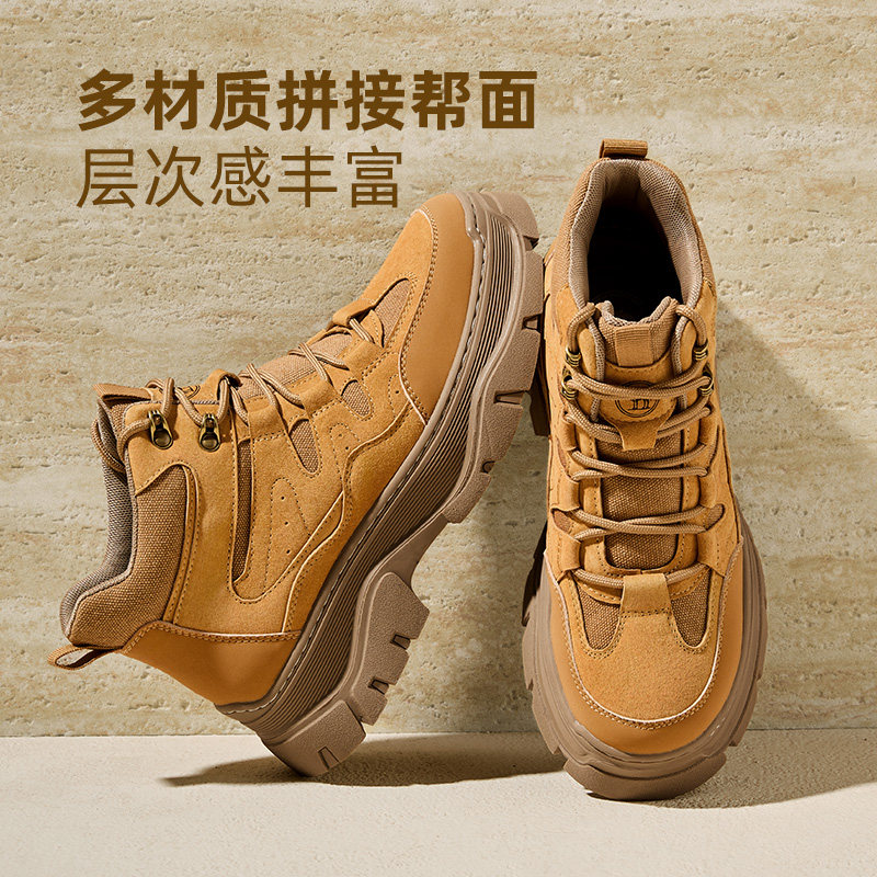 【王俊凯同款】骆驼马丁靴男鞋冬2025新款男生增高加绒户外大黄靴