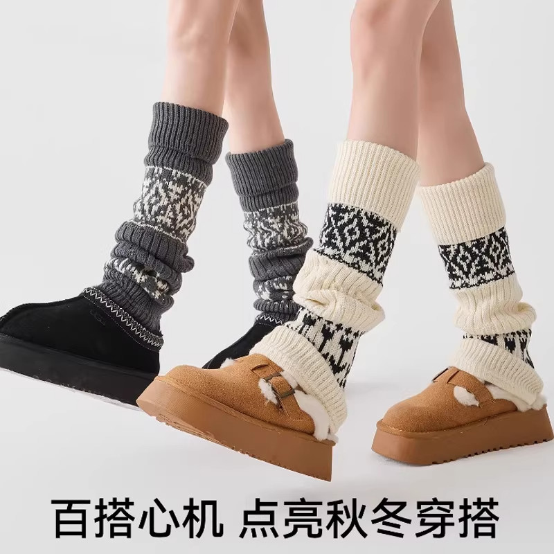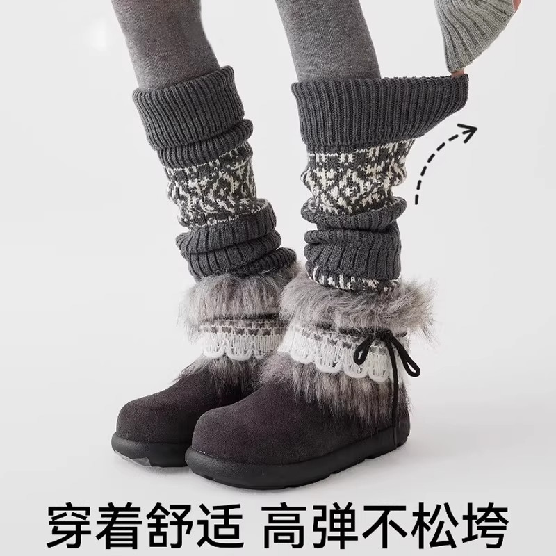 复古费尔岛女堆堆袜套秋冬款保暖配雪地靴针织羊绒加厚灰色小腿套