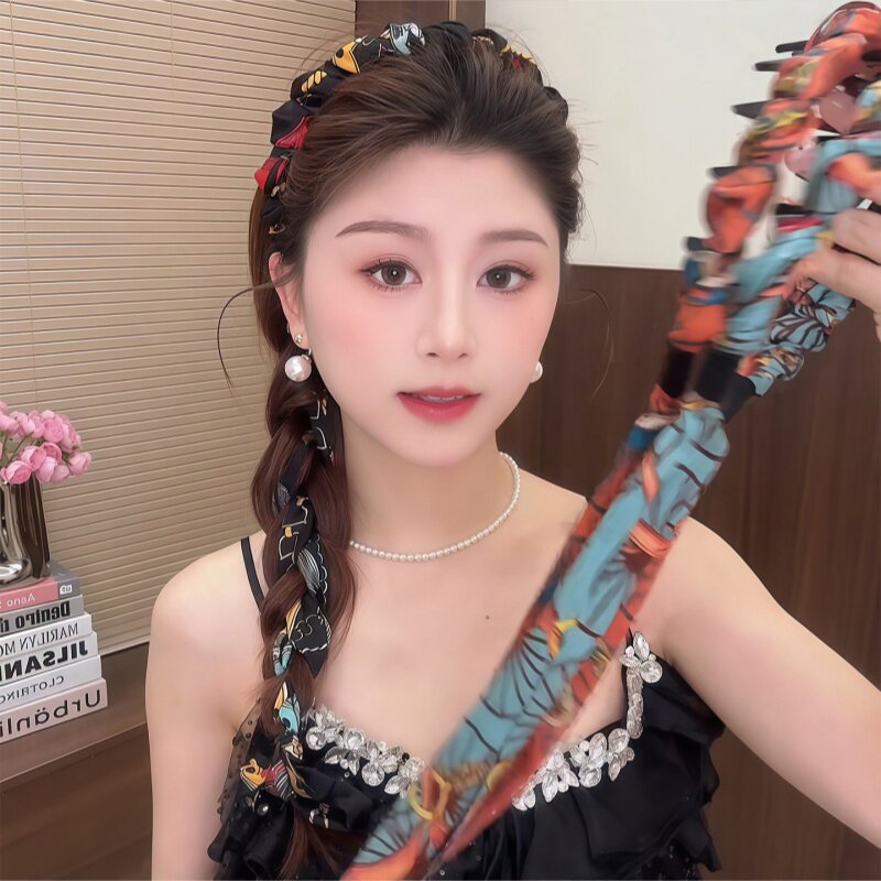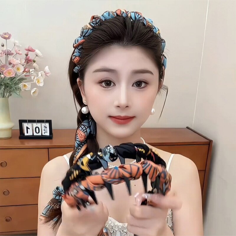 宫阙复古繁花飘带齿梳波浪高颅顶发箍正反两戴绑发一体头箍头饰女