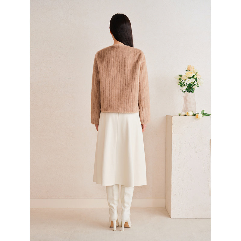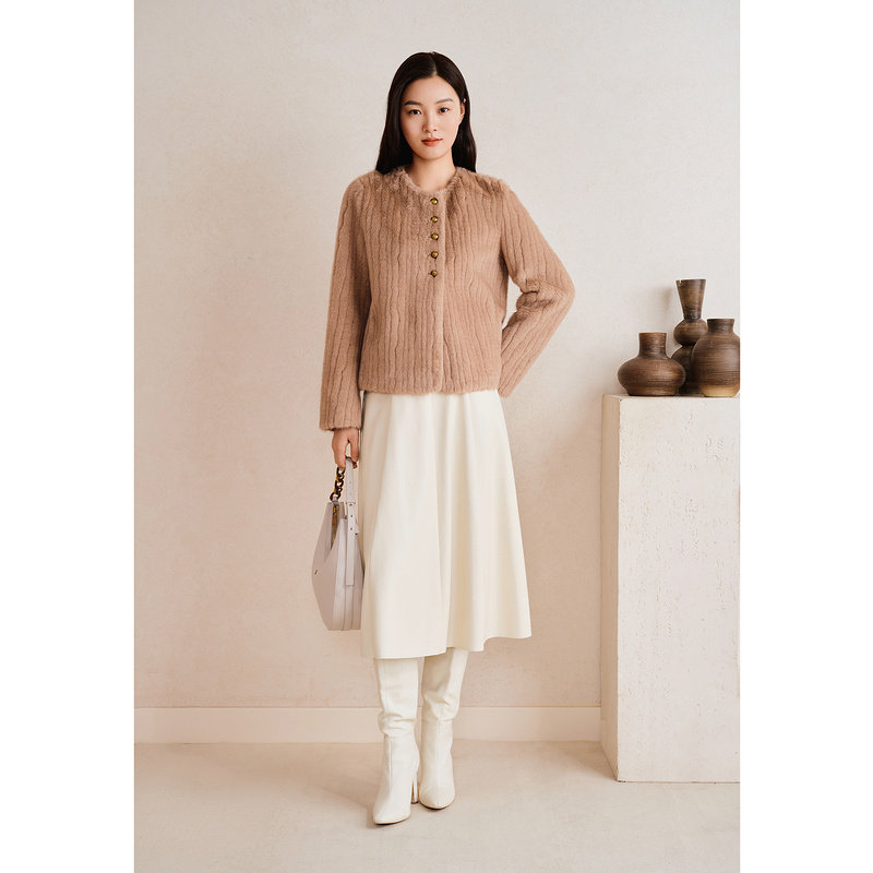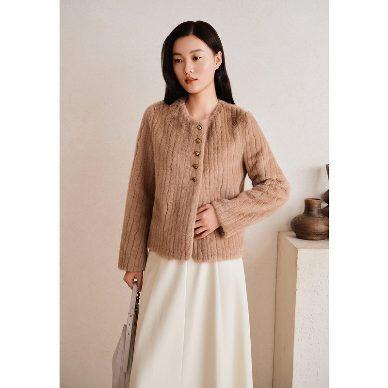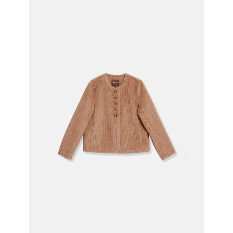 YINER音儿专选2025春季新款法式圆领金属扣饰保暖环保皮草外套