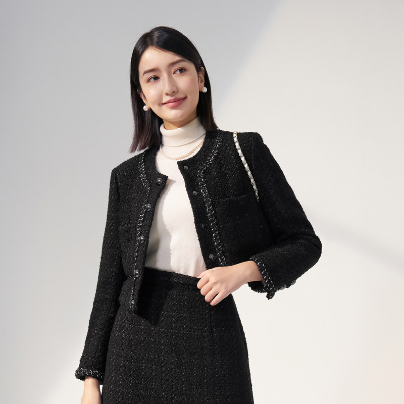 【鹅绒】波司登奥莱女士秋冬毛呢法式优雅小香风轻薄羽绒服女气质