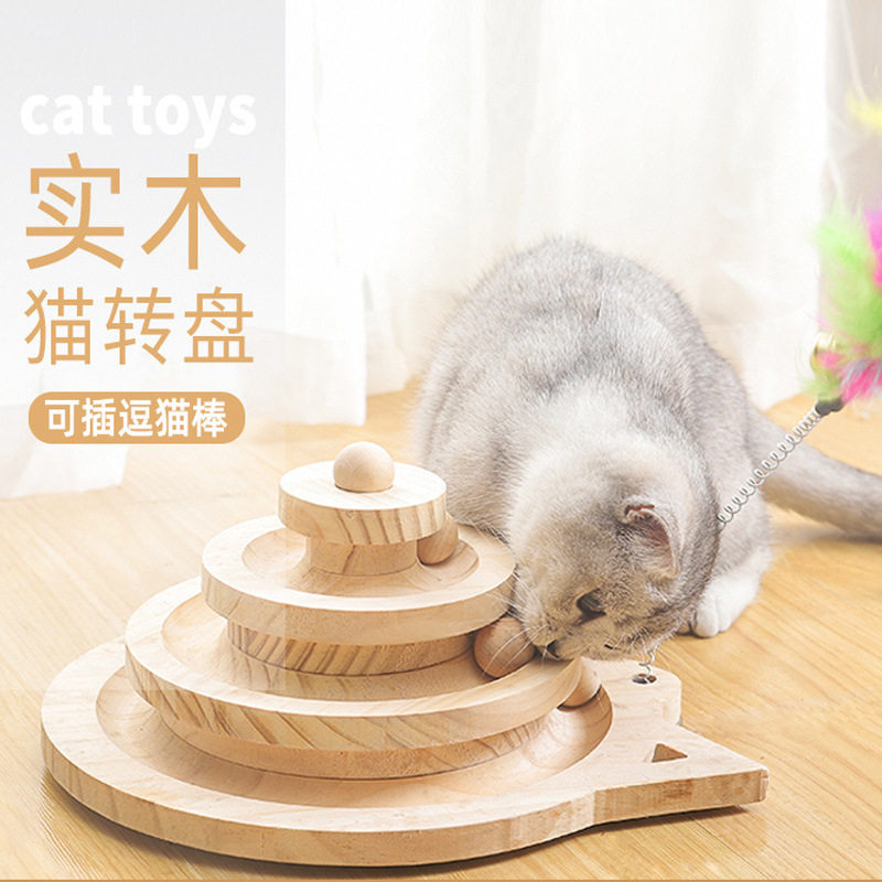 猫玩具实木转盘自嗨逗猫棒猫球小老鼠抓板猫咪用品宠物礼盒