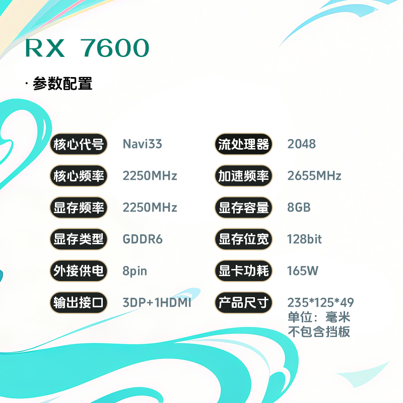 西风RX7600 8G 风神MT双风扇 白色游戏电竞显卡【7650GRE同性能】