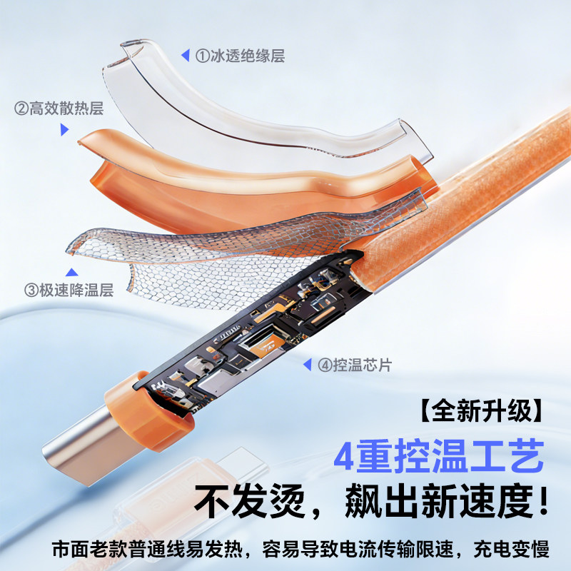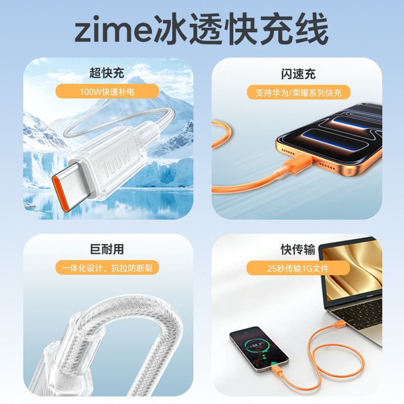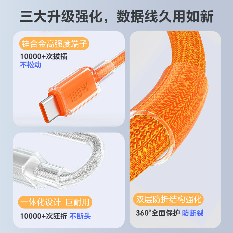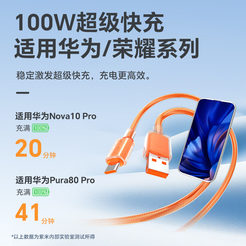 Typec冰透数据线100W超级快充6A5A适用于华为Mate80Pro荣耀OPPO小米vivo安卓手机66W/88W闪充USB充电线头套装