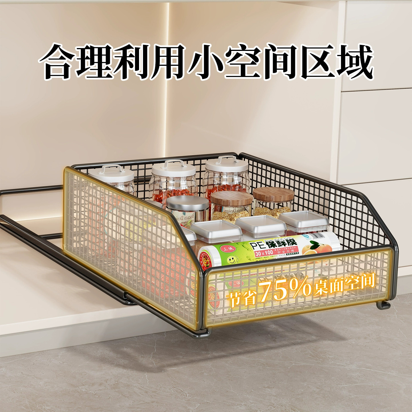 升级加高橱柜拉篮厨房抽拉式置物架多功能橱柜内下水槽拉篮储物盒