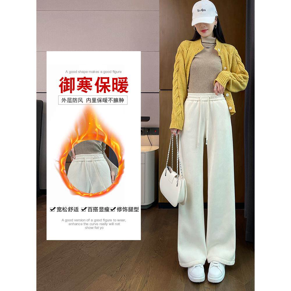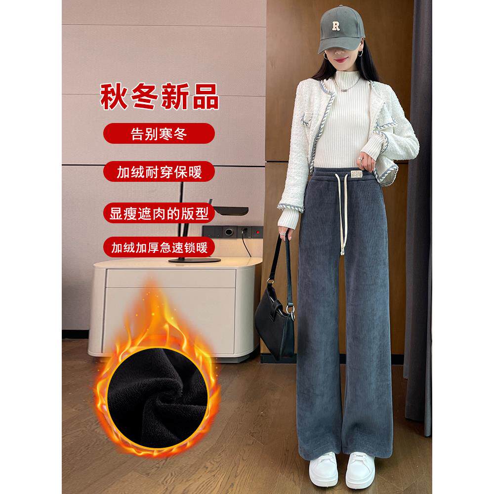 雪尼尔灯芯绒阔腿裤女春秋加绒裤子2025冬加厚窄版女黑色灰色杏色