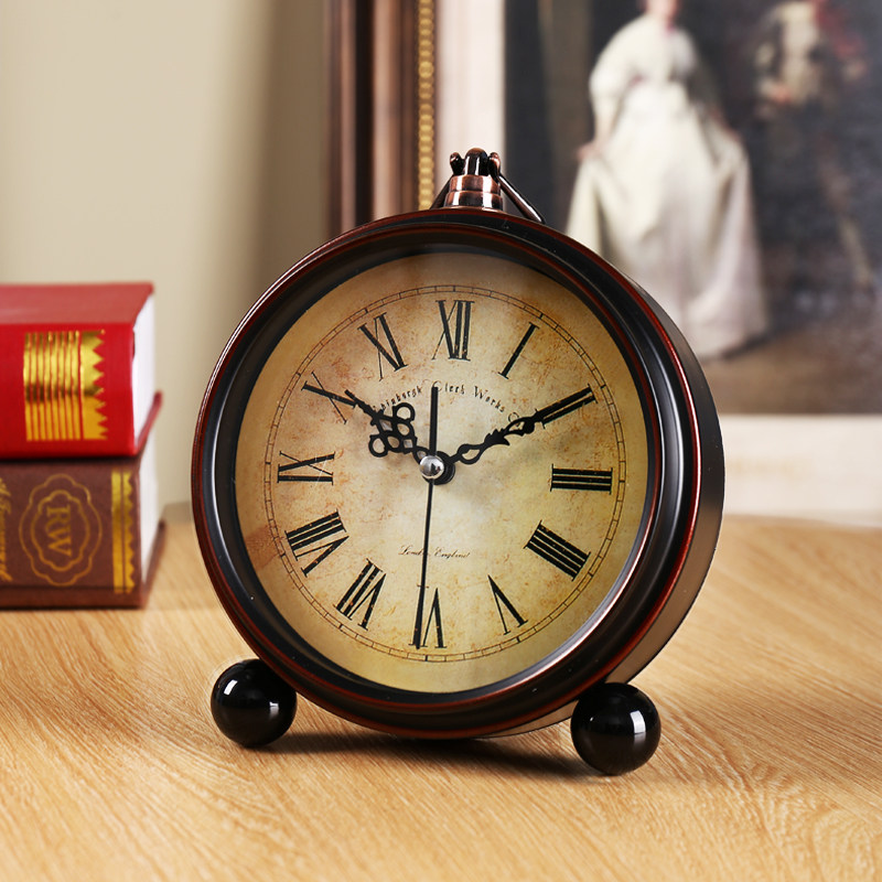 复古小闹钟桌面台式钟表摆件座钟静音学生用家用卧室时钟床头老式