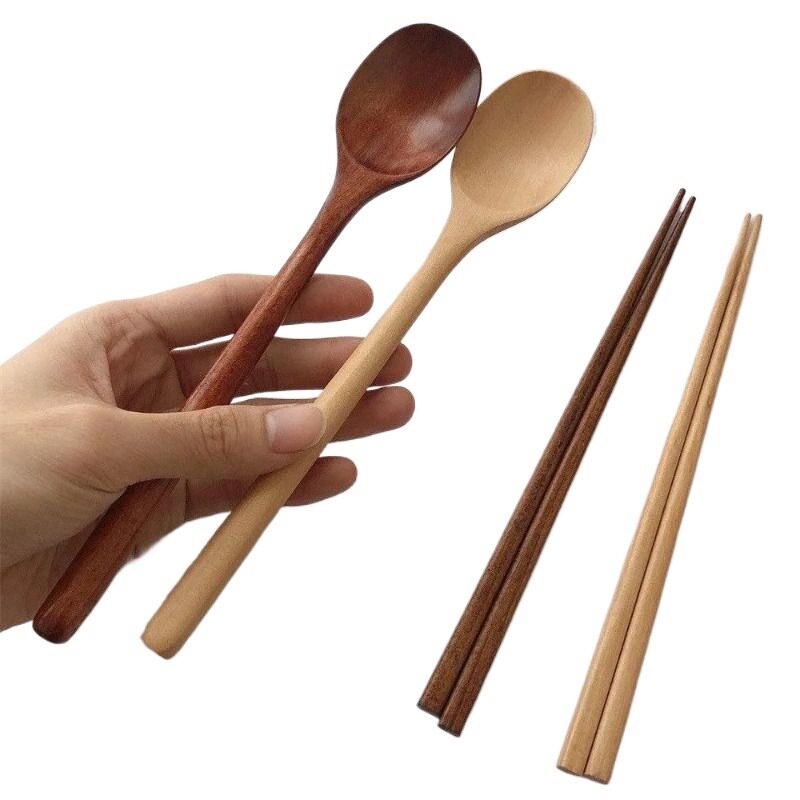 筷子勺子套装木质上班族筷子单人装便携餐具学生收纳盒餐具三件套