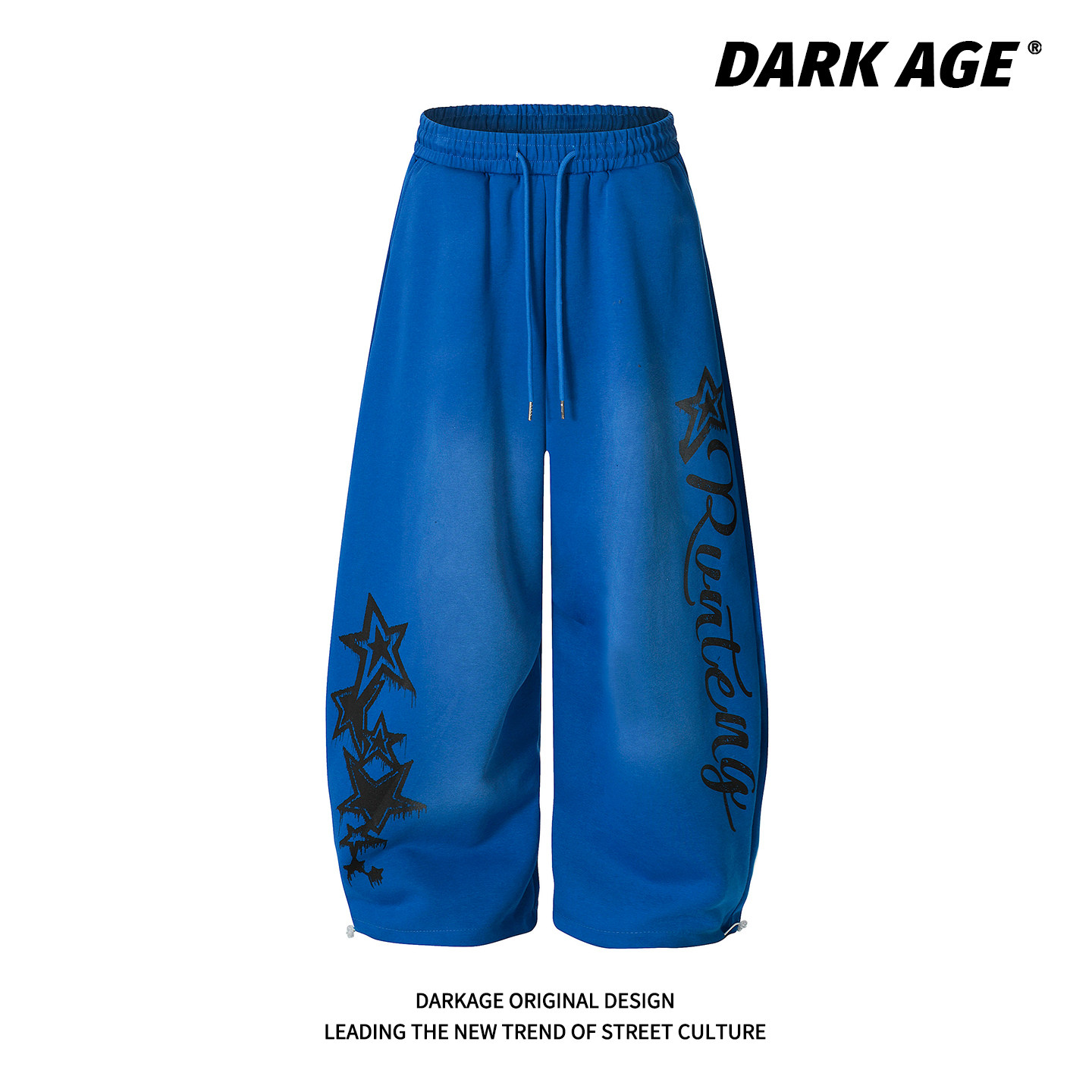 DARKAGE原创美式复古字母印花弯刀休闲裤女秋冬阔腿宽松休闲长裤