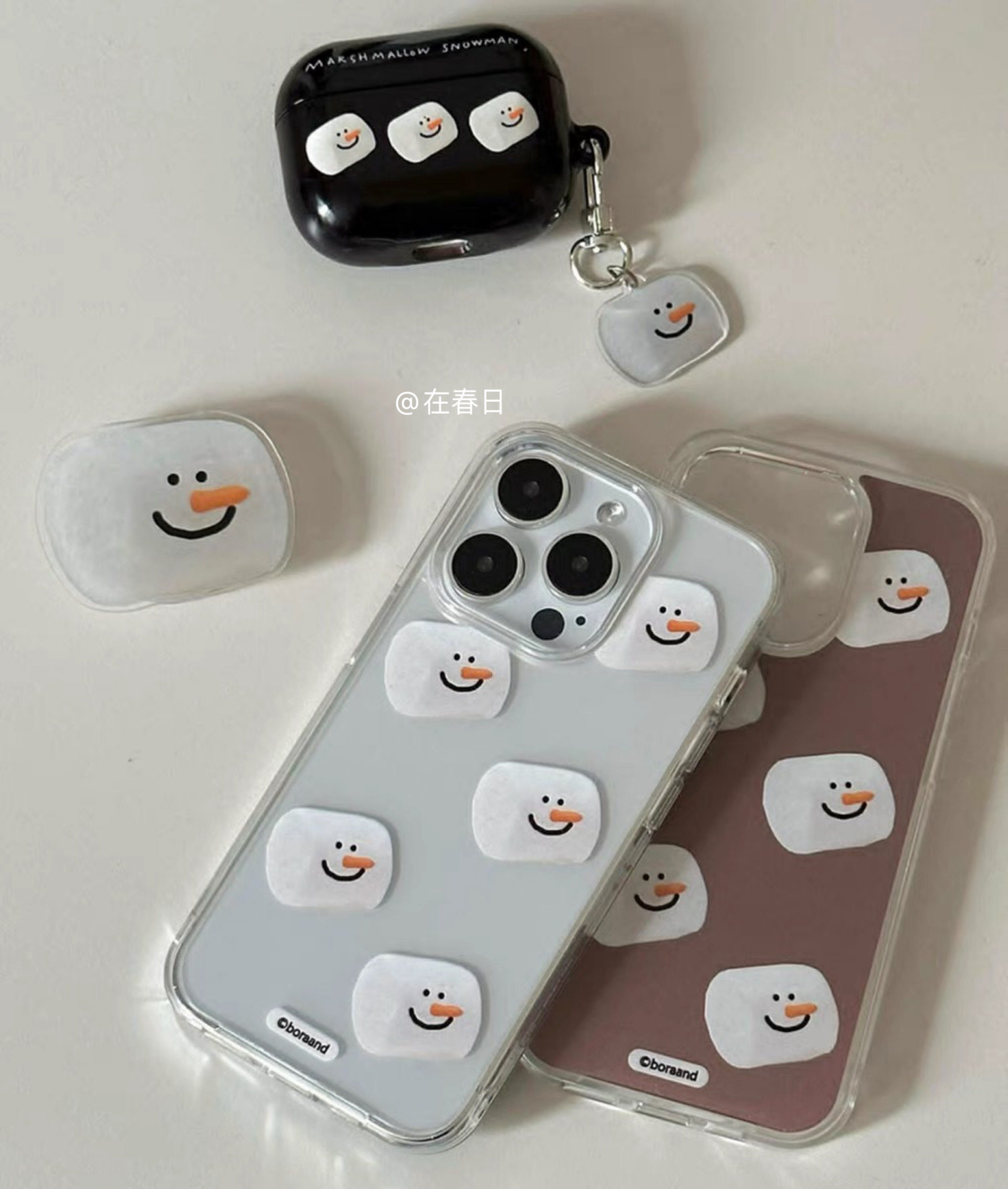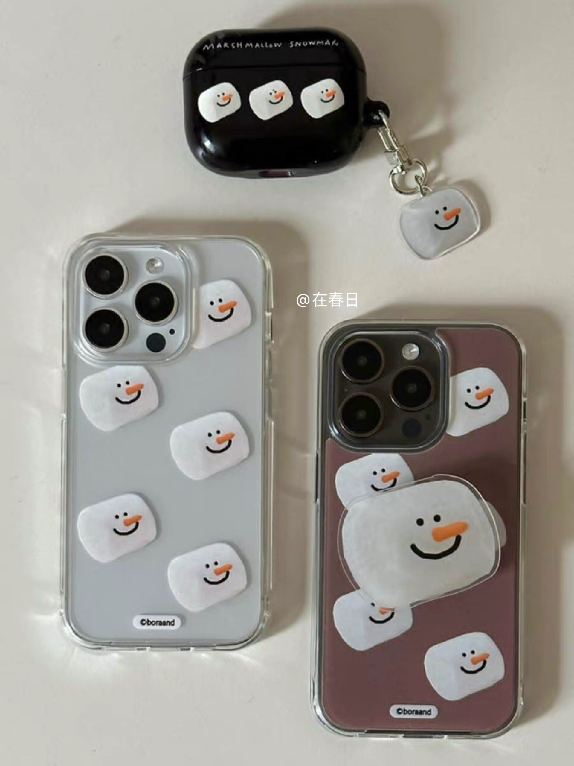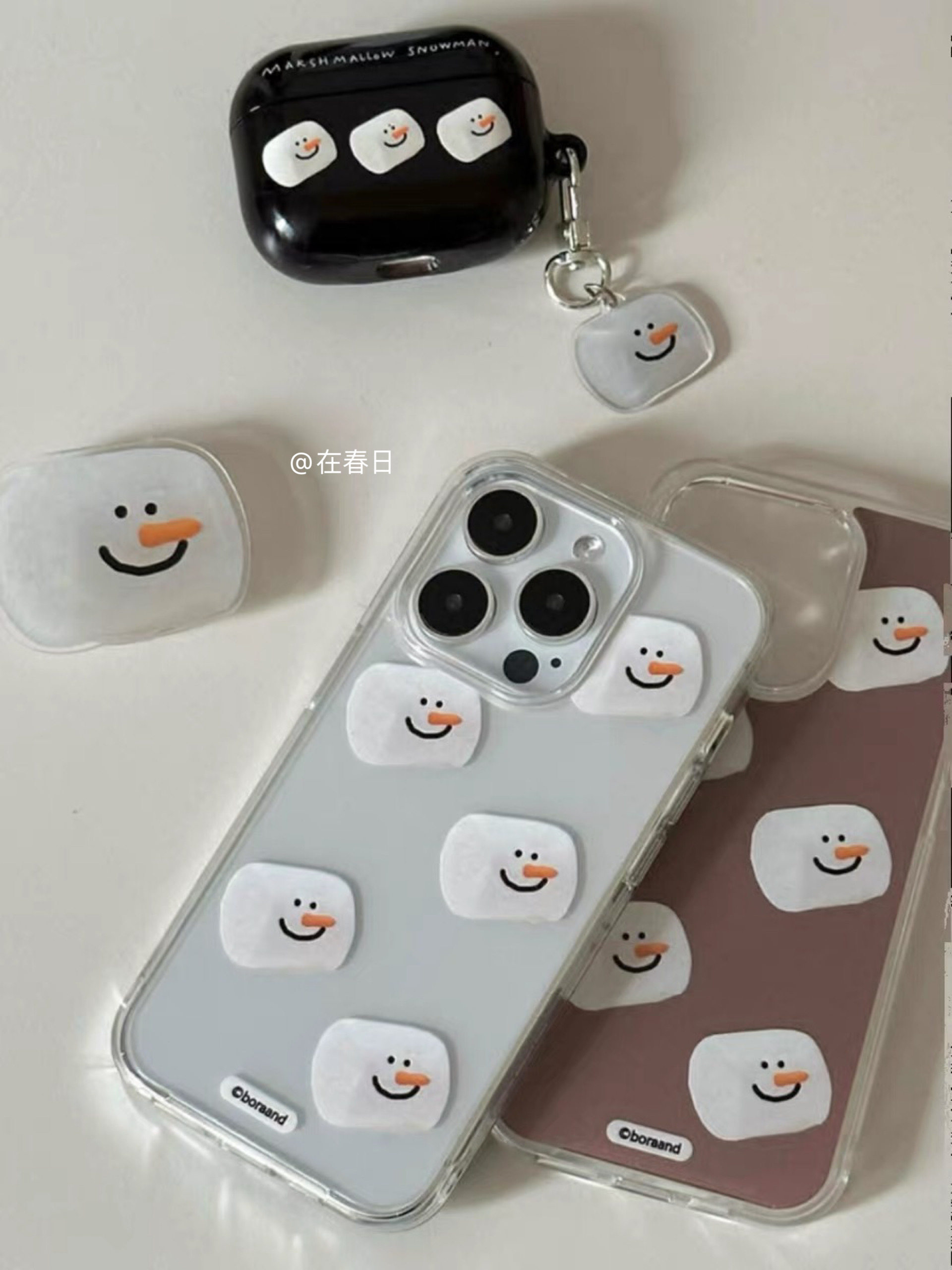在春日ins韩国小雪人棉花糖支架手机壳17promax/14适用iPhone16pro新款硅胶软壳苹果14promax/12/xsmax