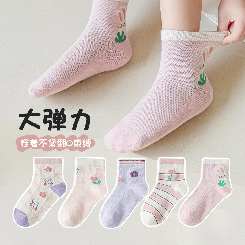 六指鼠女童袜子夏季薄款网眼透气小女孩夏天中筒袜女宝宝儿童棉袜