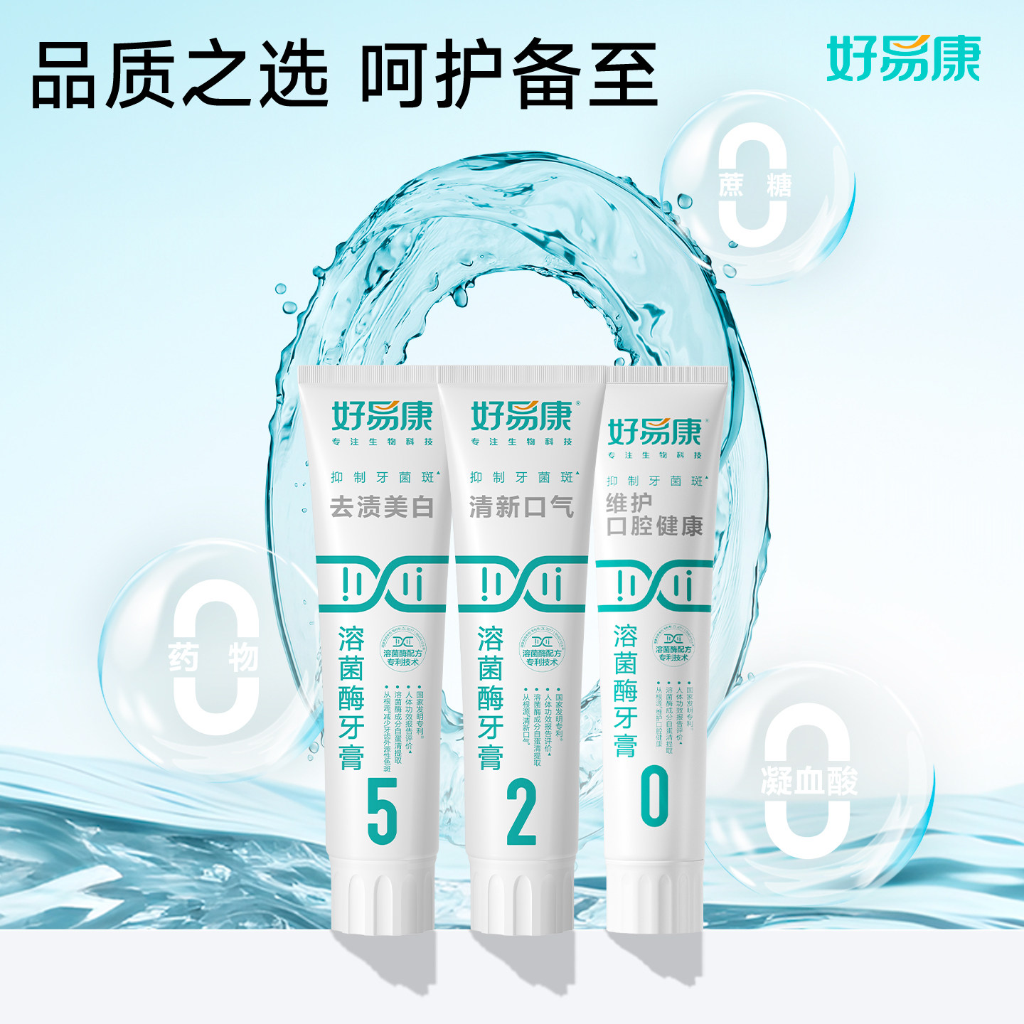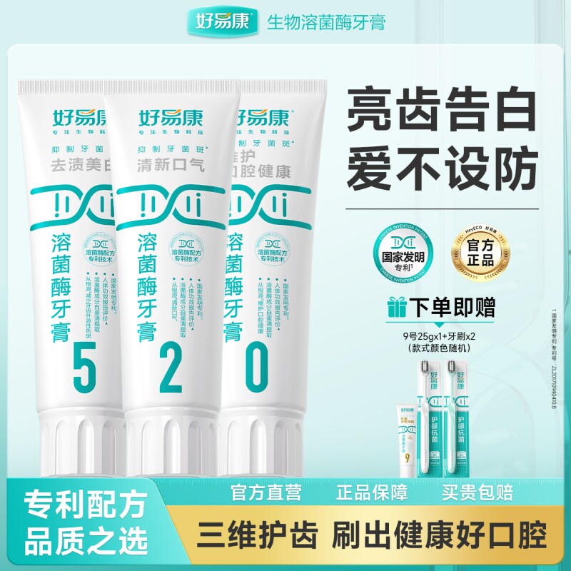 好易康溶菌酶牙膏亮白牙齿520口腔护理套装旗舰抗菌牙菌斑护龈